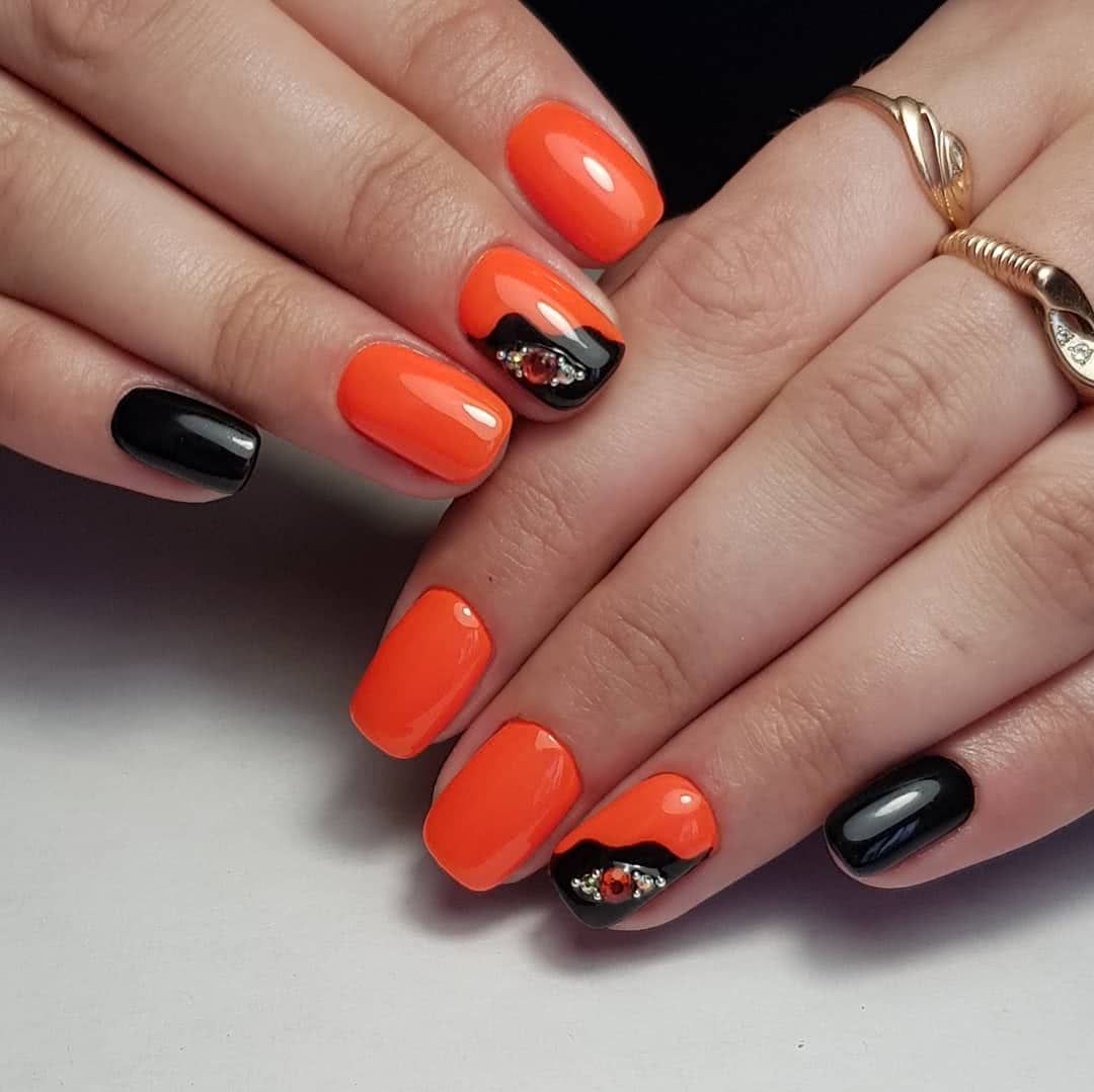 Самым экстравагантным и модным сочетанием является красный и черный. Существует множество идей выполнения маникюра в этих оттенках. За основу берется любой тон из двух, а другой его разбавляет. Камни для украшения используют чаще черные, они делают дизайн более стильным. Их можно дополнить минимальным количеством золотых или с металлическим отливом.