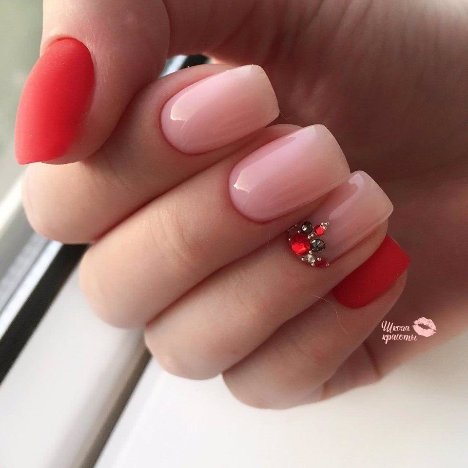 Красный маникюр 2019 с разными цветами, оттенками и оформлениями