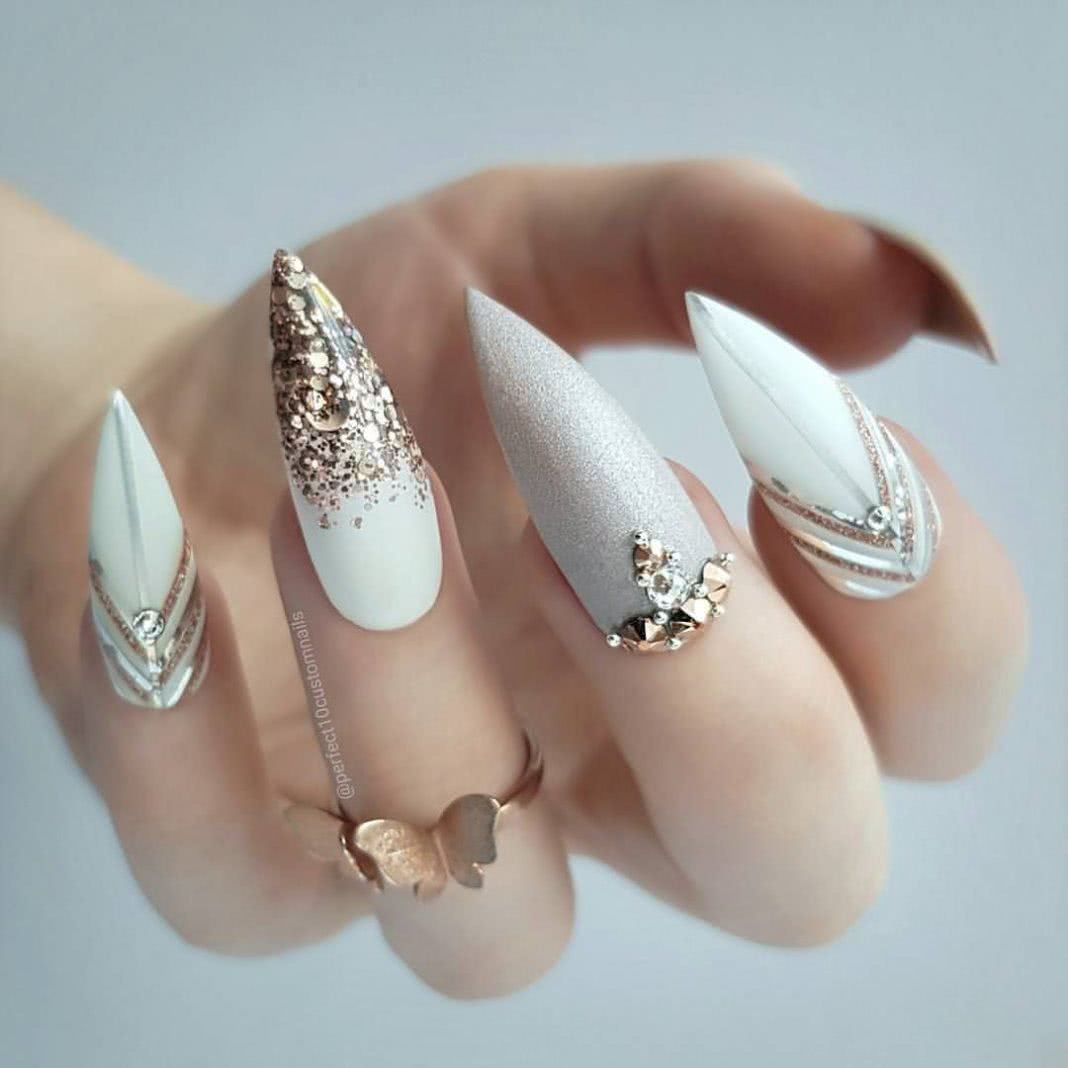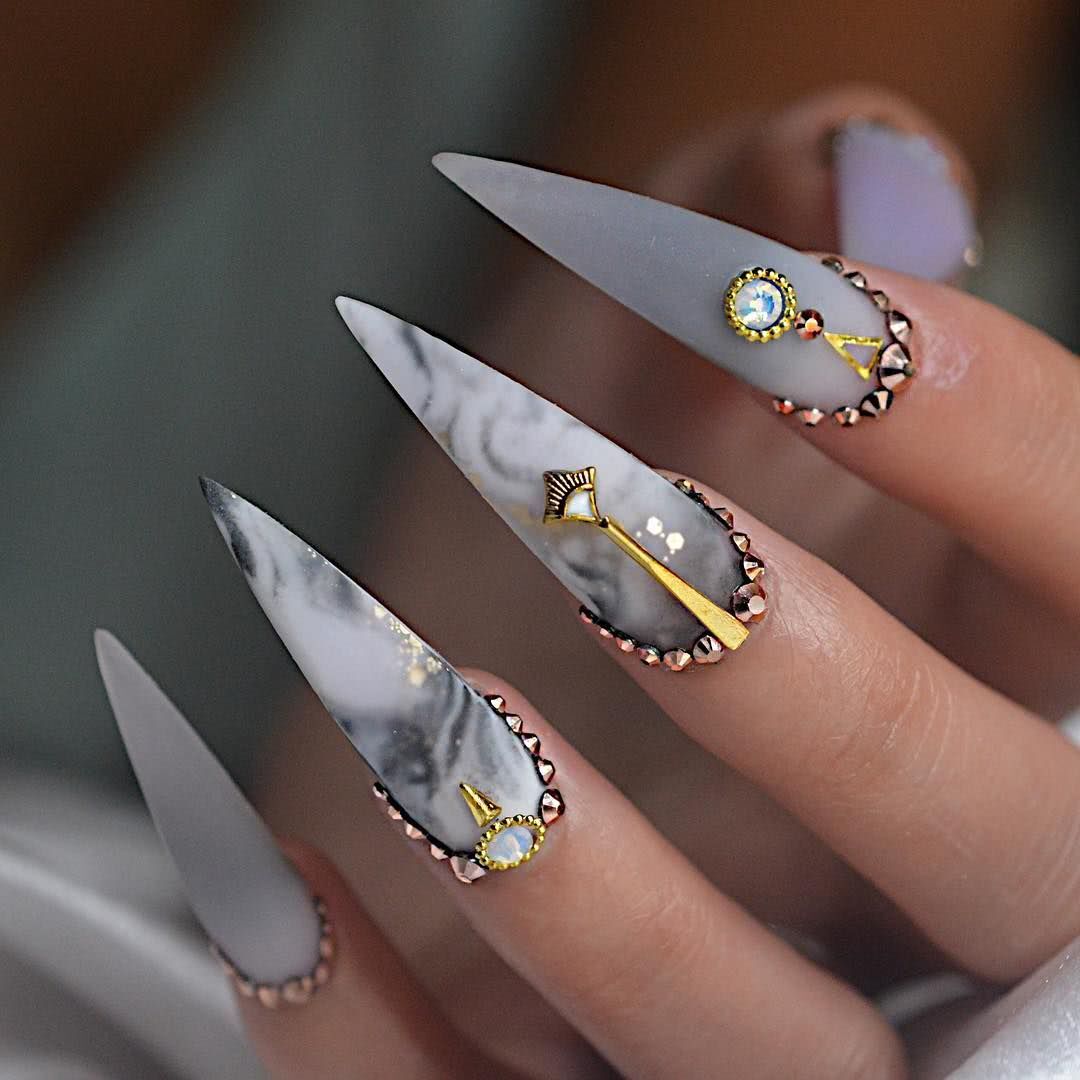 Этот маникюр не предназначен для повседневных выходов, но будет уместен и привлечёт внимание окружающих на каком-либо торжестве