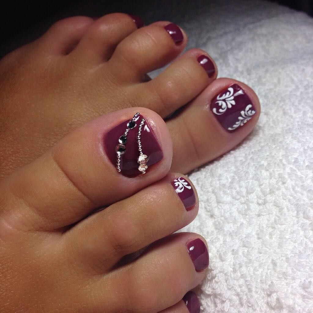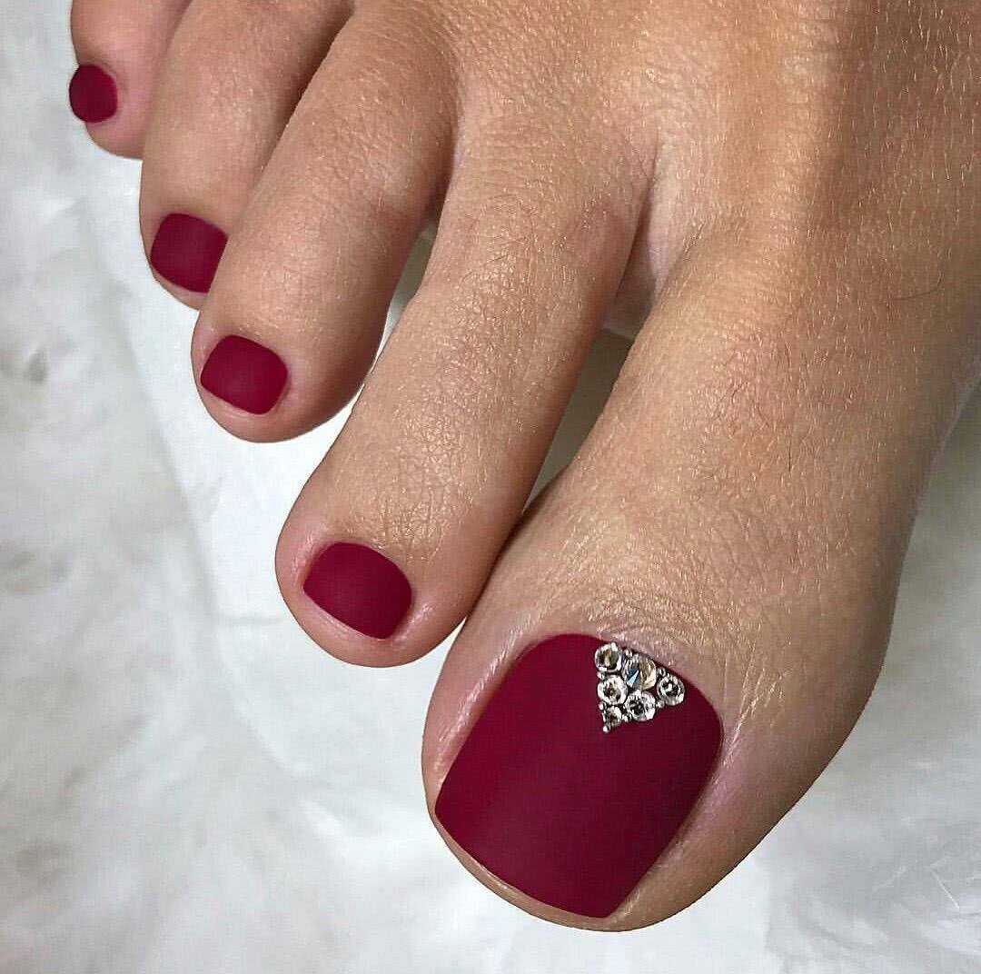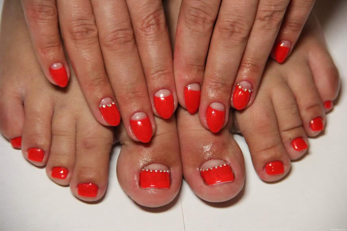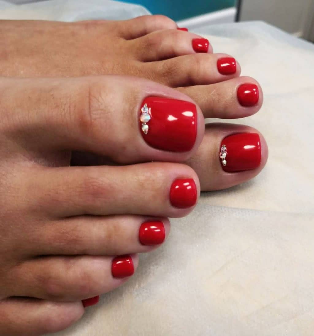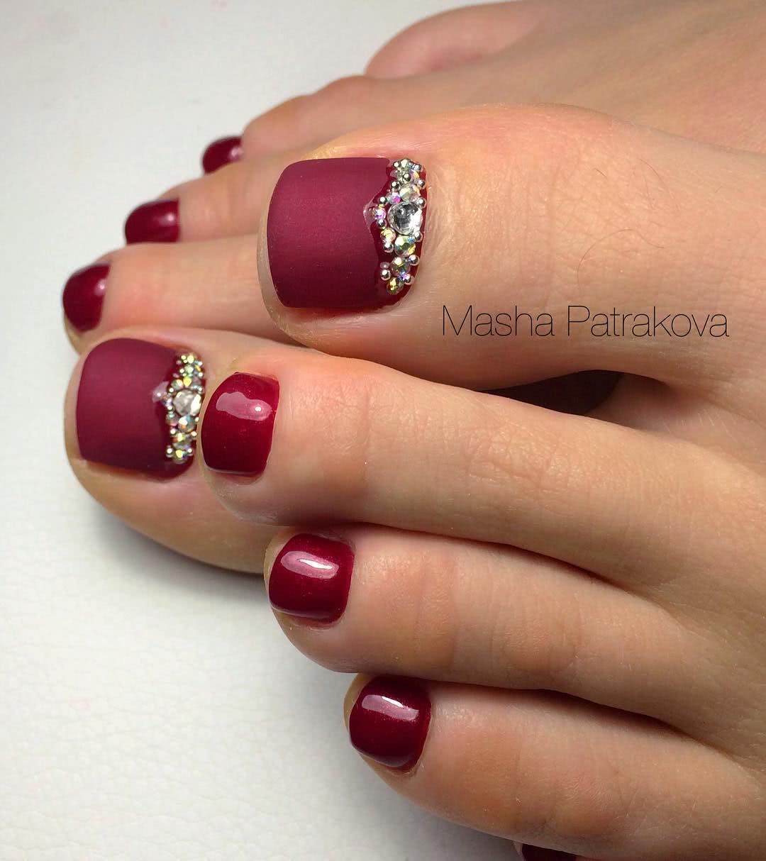 Что касается красного педикюра со стразами, то тут для модниц много новинок. Используйте для дизайна не только классические серебряные стразы, но и красные, бордовые, синие камни