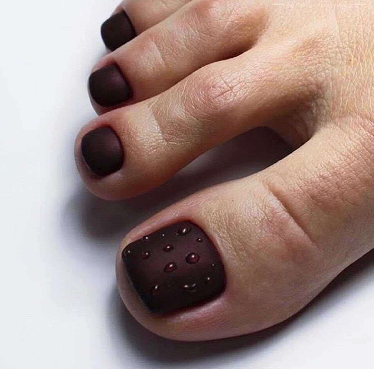 Однотонный. Если в вашем офисе действует строгий дресс-код, однотонный педикюр – то, что вам нужно. Не бойтесь красного цвета. Можно подобрать приглушенные оттенки, которые будут подчеркивать красоту ног и не выглядеть вызывающе. Если же вы свободны в выборе одежды, то не бойтесь экспериментировать. Можно большой пальчик покрасить в другой цвет, это будет смотреться оригинально и скромно одновременно.