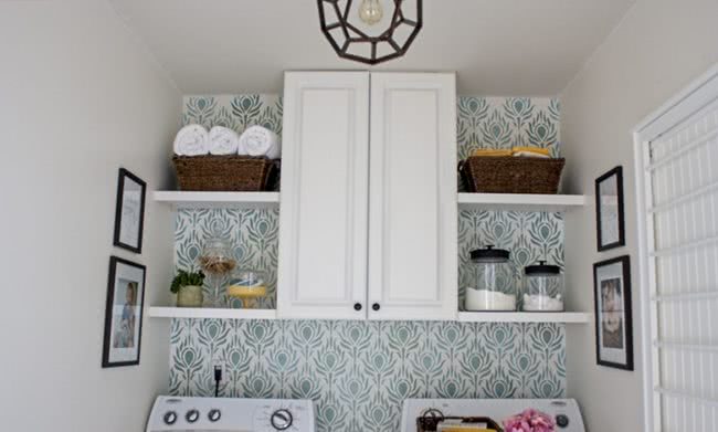 Чтобы как-то разнообразить стены и не оставлять их просто белыми украсьте их контрастным цветочным узором, созданным с помощью трафаретов.