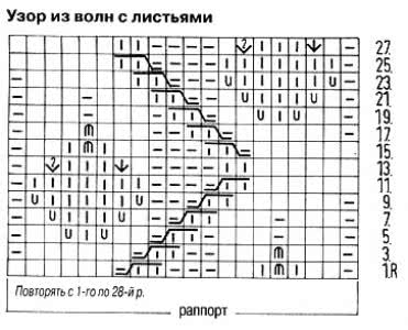 Четные ряды узора вяжут по левой стороне изнаночными петлями. Нечетные — по правой стороне. Раппорт узора по ширине равен 12 петлям, по высоте -24 рядам.
