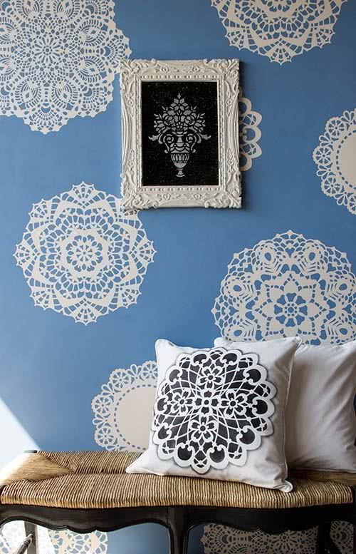 Трафаретный способ позволяет украшать стены рисунками разной сложности, не зависимо от художественных способностей. Вы сможете создать даже очень сложный орнамент, всего лишь купив соответствующий трафарет.
