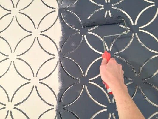 - Когда трафарет зарисован и краска высохла, перевесьте его на следующее место и повторите предыдущие действия. Продолжайте, пока не покроете всю стену.