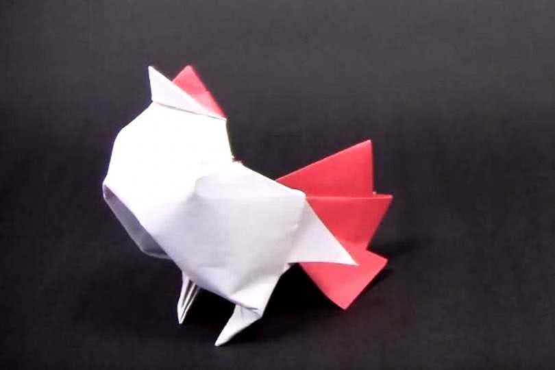 Данный вариант оригами отлично подойдет для первой поделки птицы из бумаги. Помимо легкости в исполнении, такой символичный подарок можно сделать кому-либо из родственников.