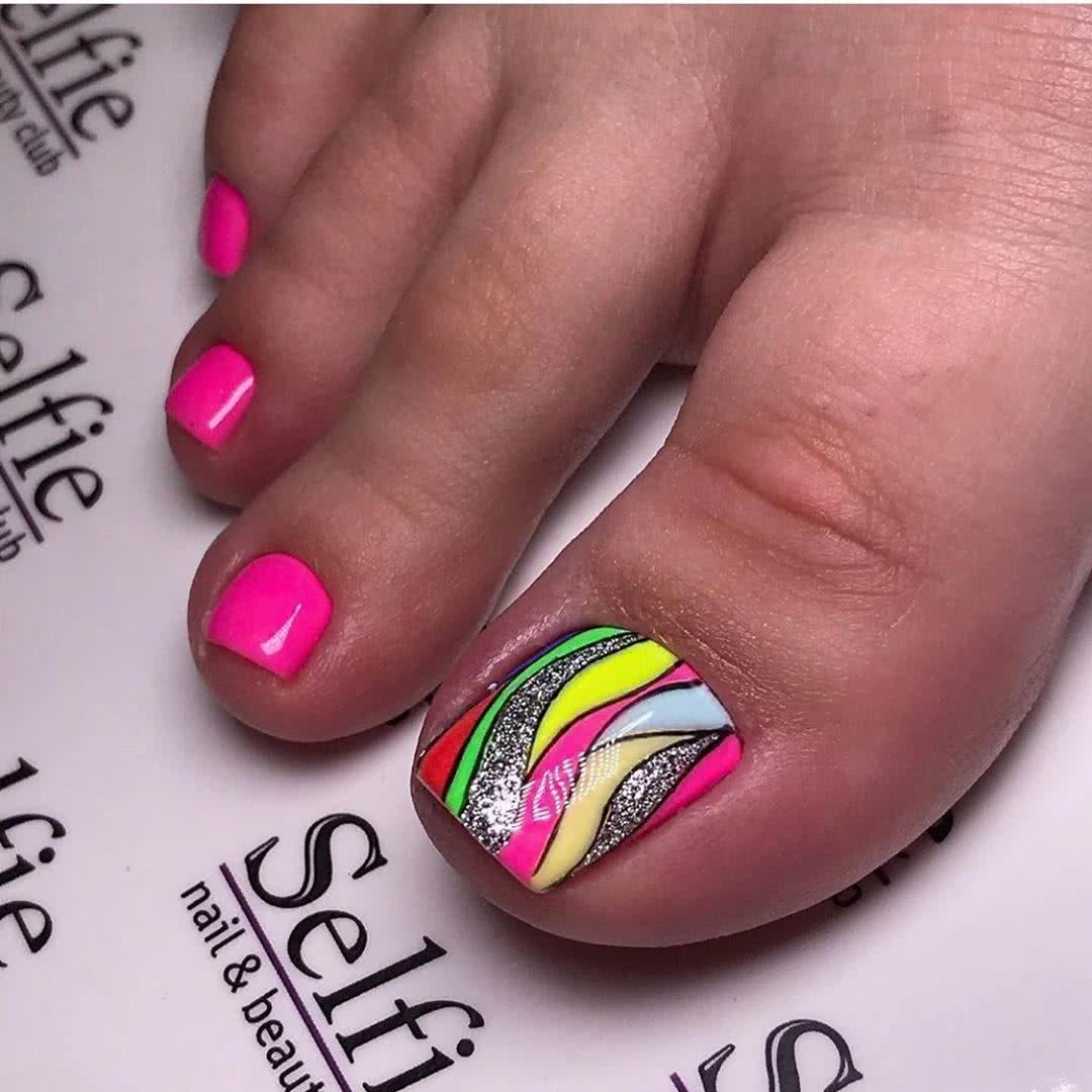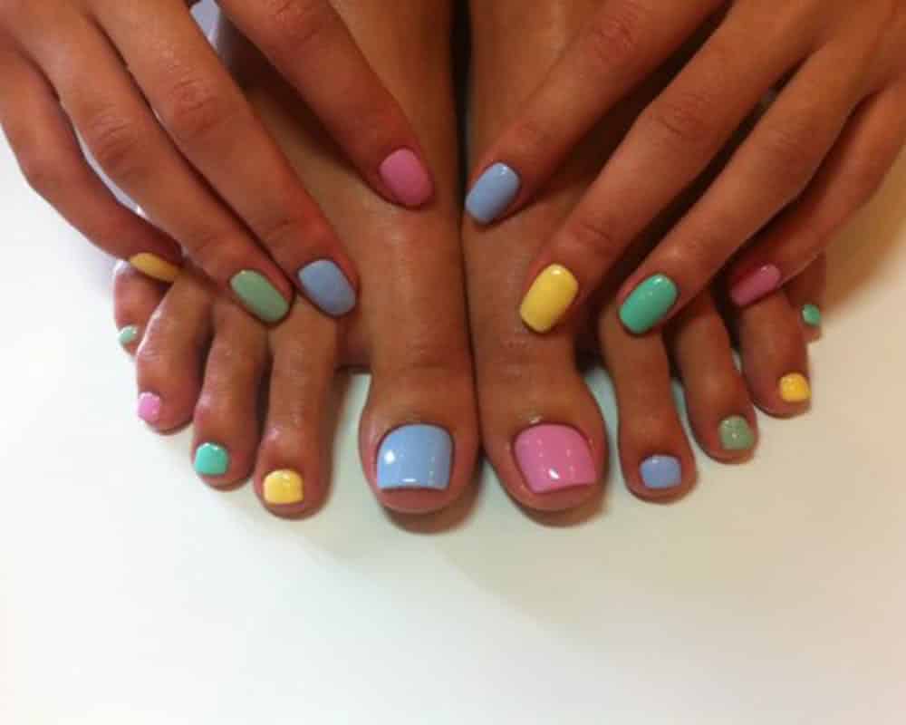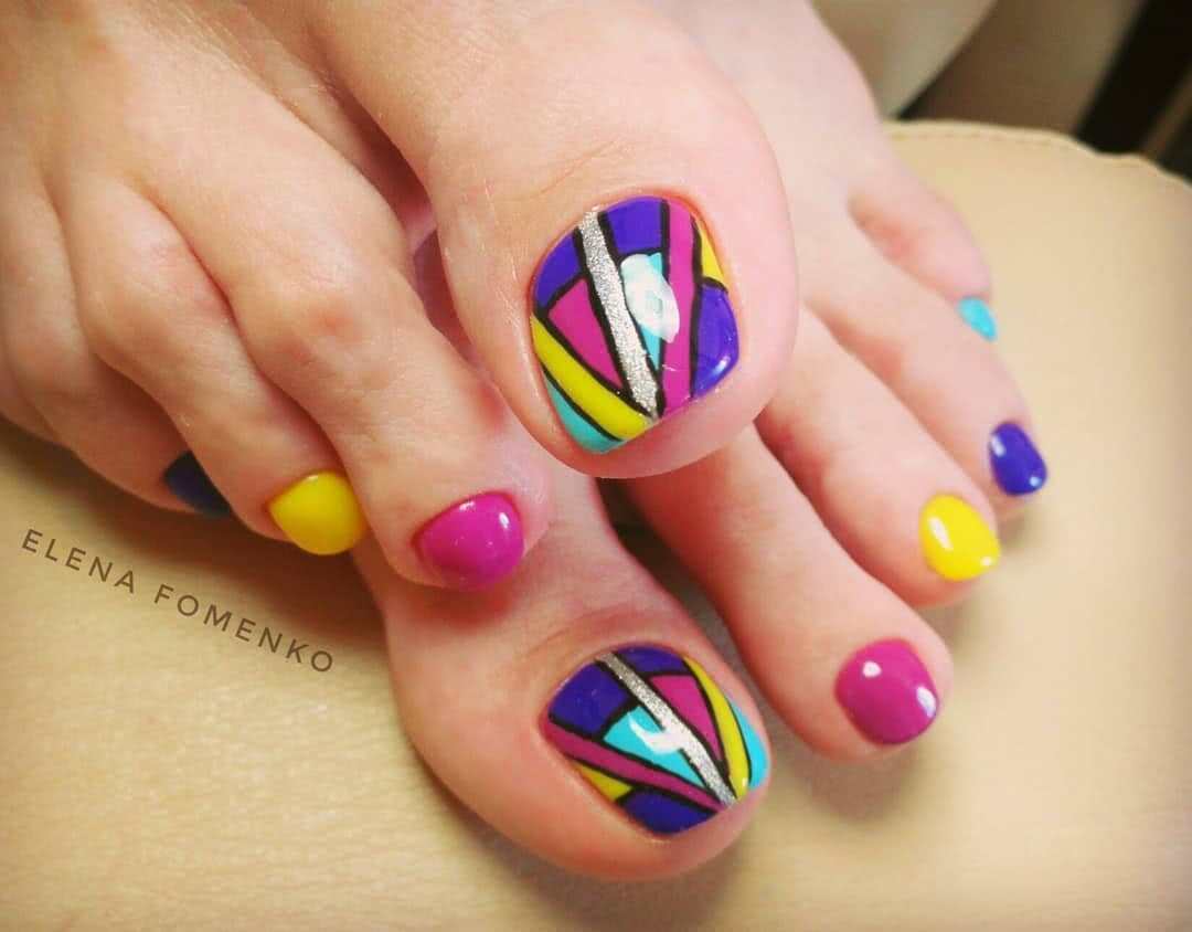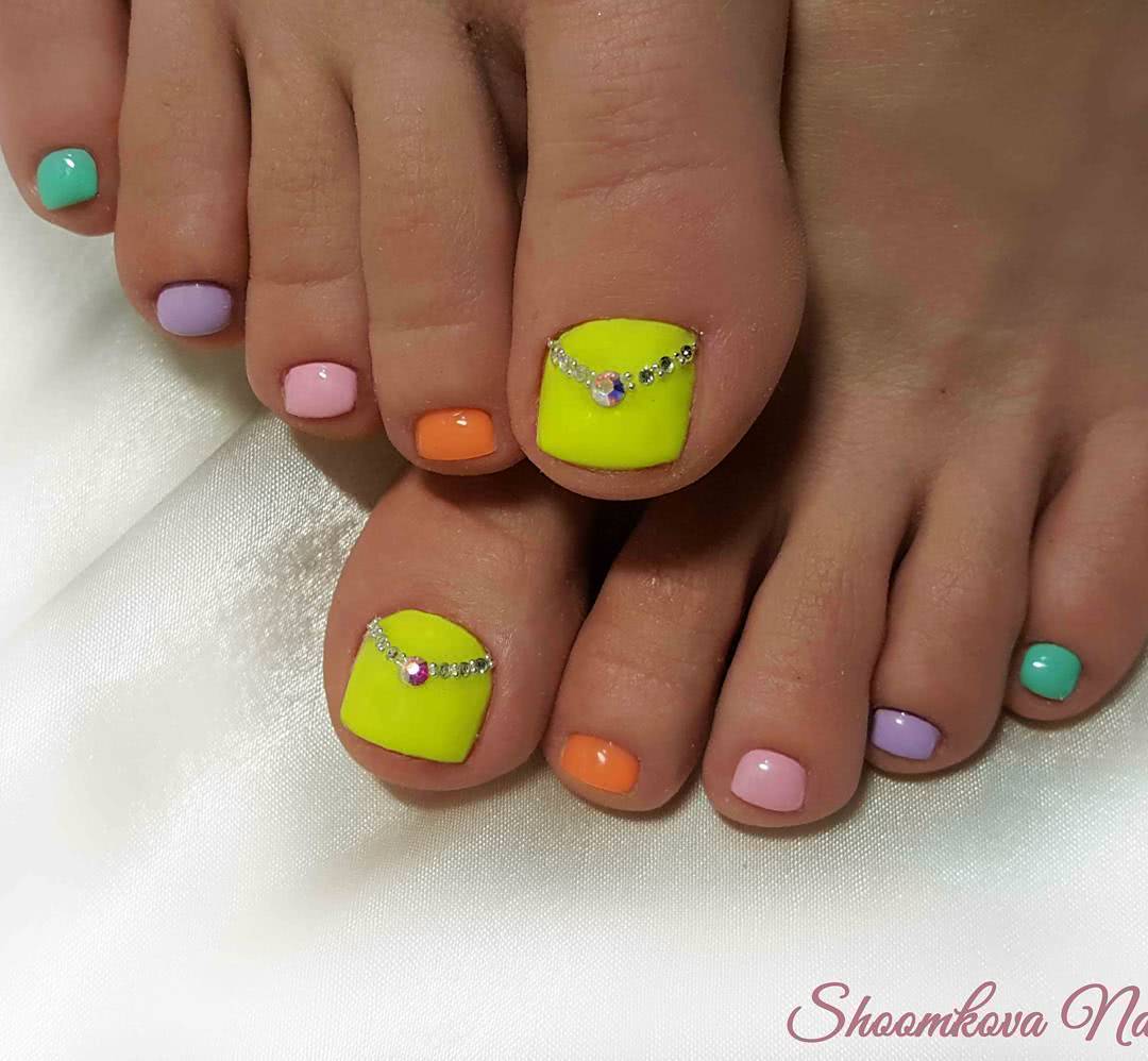 Педикюр разными цветами