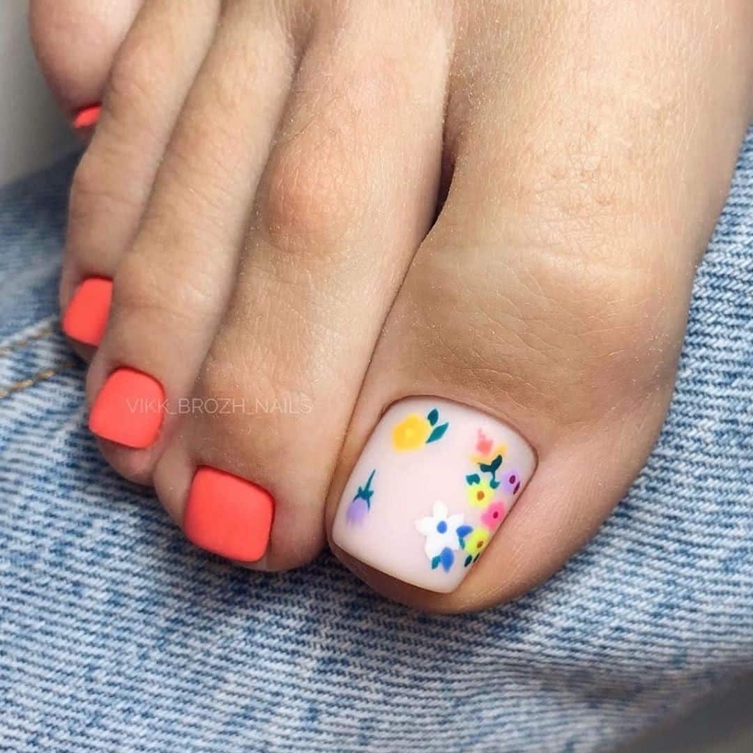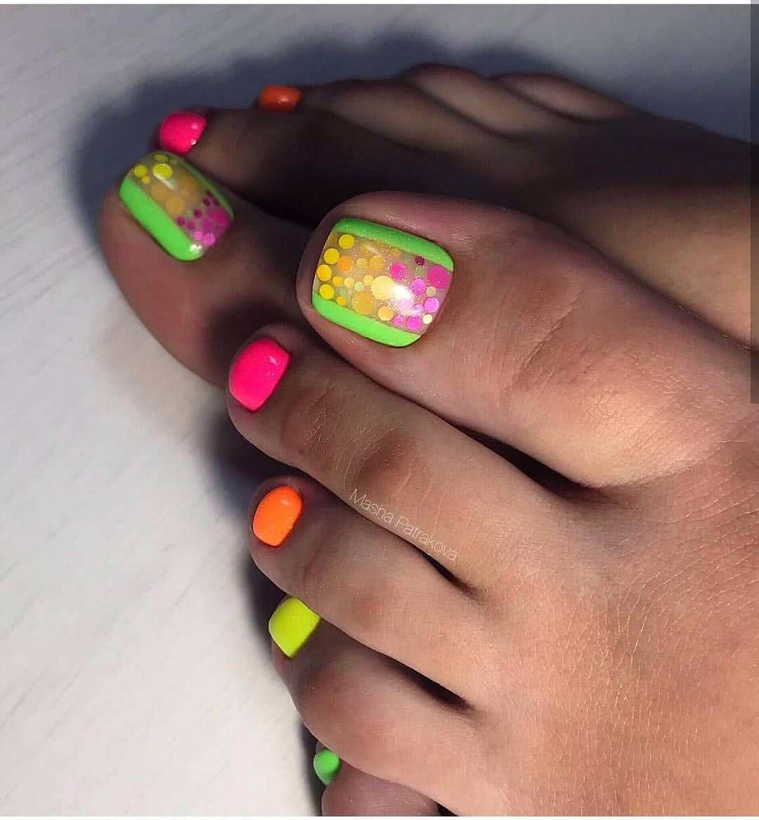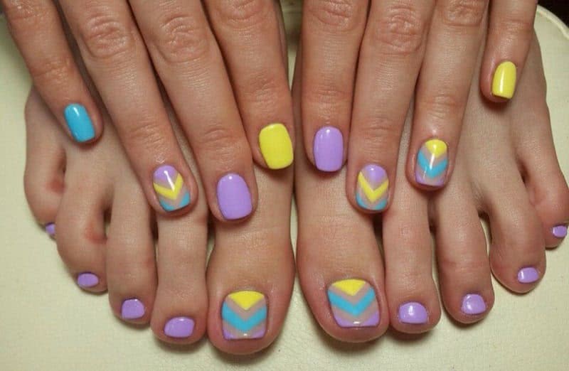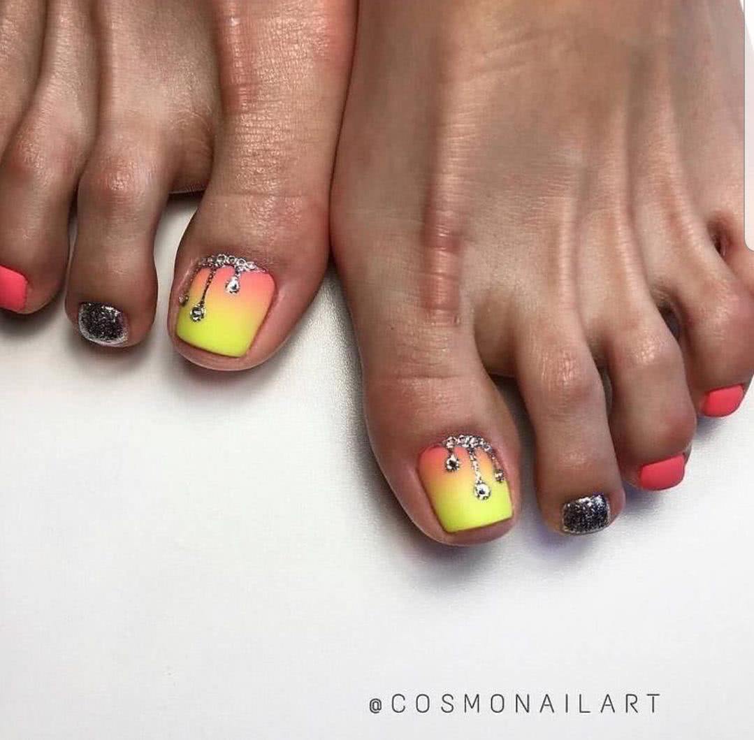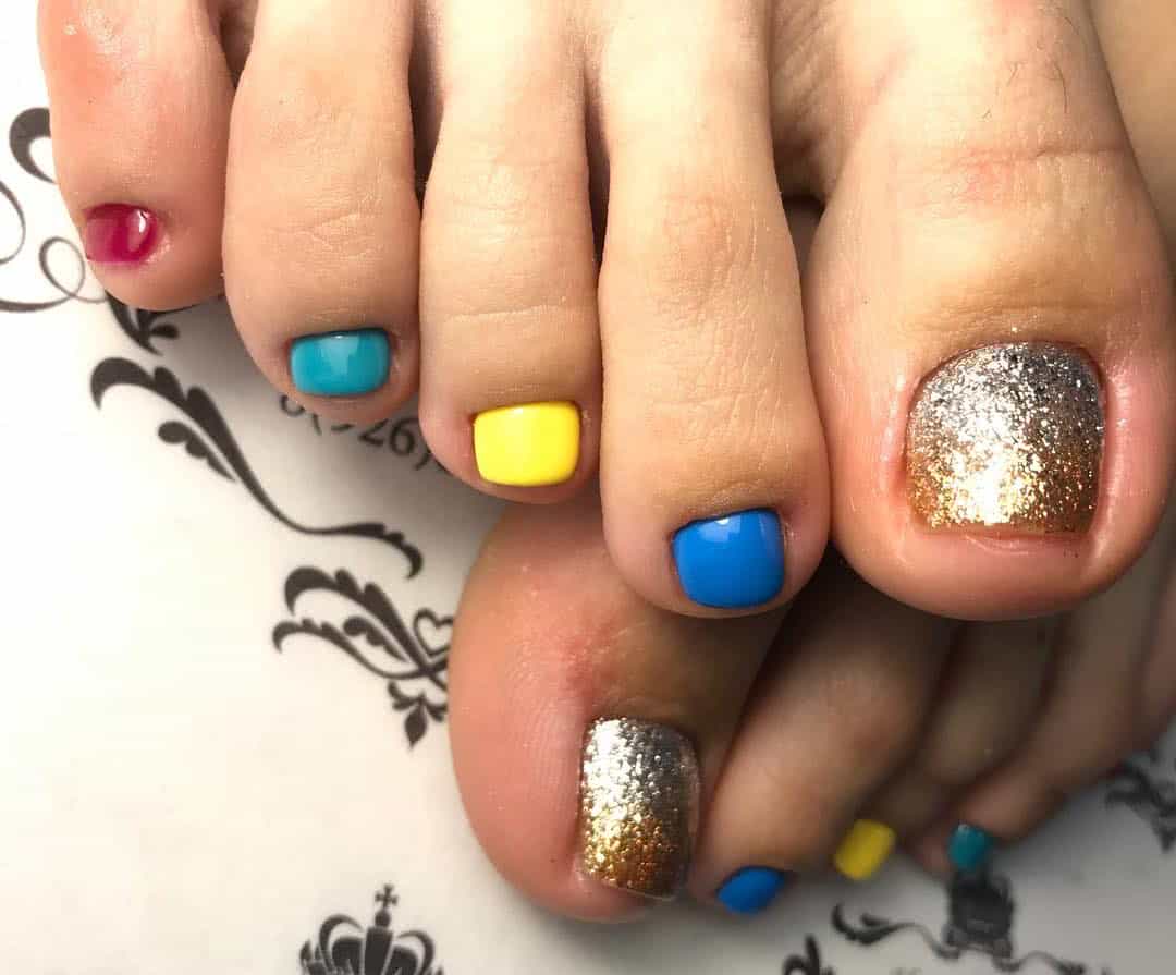 Педикюр разными цветами