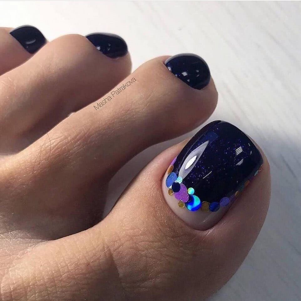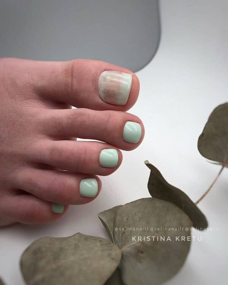 Самые смелые модницы могут сочетать матовые оттенки с сияющим шиммером, выделяя последним 1-2 ногтя на каждой ноге.