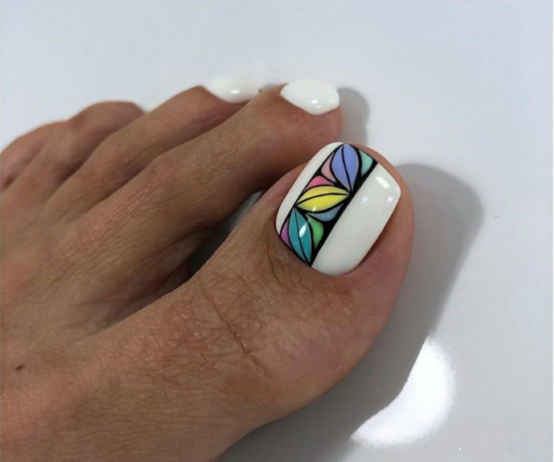 Создавая педикюр в разноцветной гамме, стоит уделить внимание данным новинкам:. Рисунки цветов на радужном фоне
