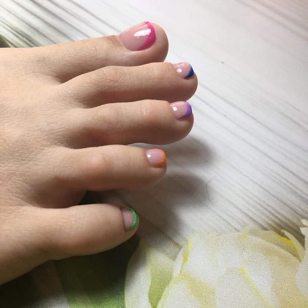 Разноцветный педикюр с френчем от @_olganail20 / Instagram
