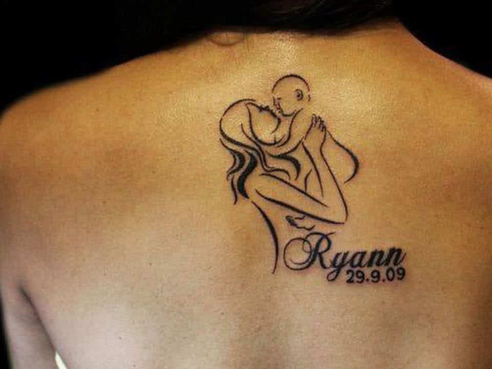 Татуировка может иметь вид женщины, держащей ребенка в руках. Для обладателя рисунка это будет значить неразрывную духовную связь.