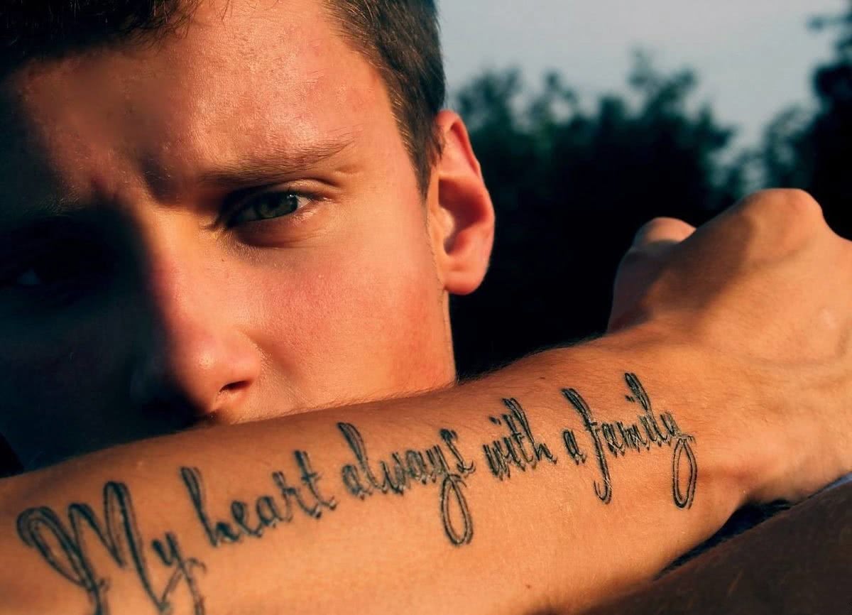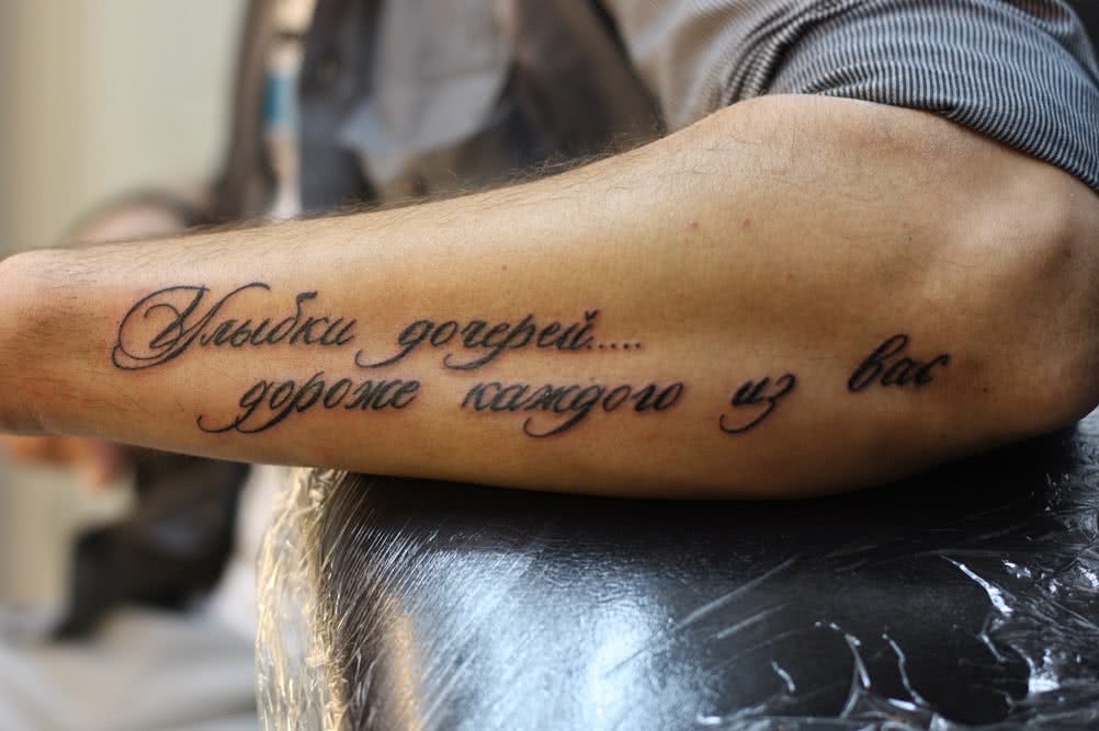 Тату может быть в виде надписи, а может состоять из парных изображений. В основном на руках располагаются тату, посвященные матери и отцу.