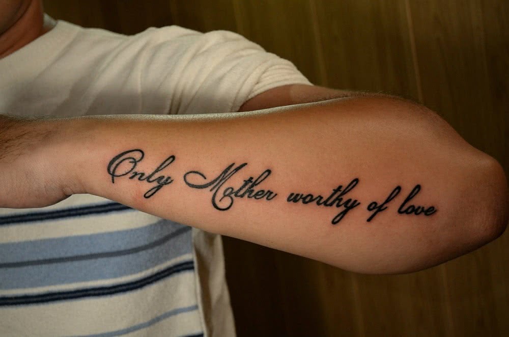 Надписи станут хорошим решением в том случае, когда вам хочется сделать уникальное тату в честь своей матери. Обычно это любимая фраза родительницы либо цитата из книги, которая будет в полной мере отражать отношение к родному человеку. Наиболее востребованы такие тексты, как: «Улыбка мамы дороже любого из вас», «Спасибо любимой маме за жизнь», «Мой ангел – моя мама», «Любви достойна лишь мама». Чаще всего эти высказывания набивают на русском и английском языке, а также на латыни.