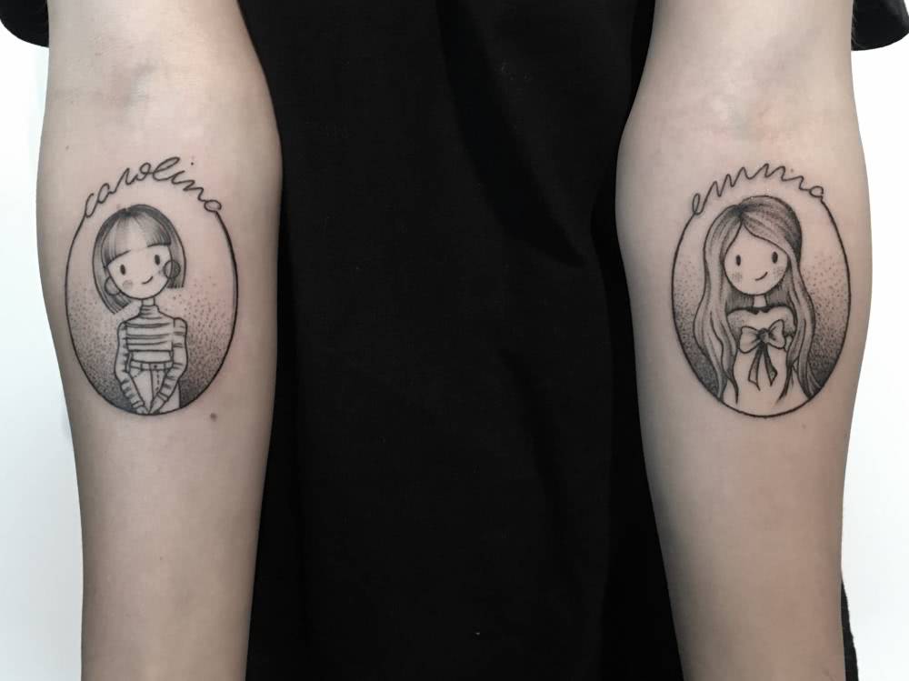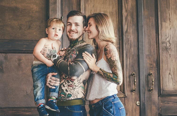 Если родители готовы к новым ощущениям, можно попробовать вариант парной татуировки. Это один и тот же рисунок, который мастер наносит разным людям. Профессионалы против копирования тату, но в некоторых ситуациях готовы сделать исключение. Или же 2 татуировки, которые дополняют друг друга.
