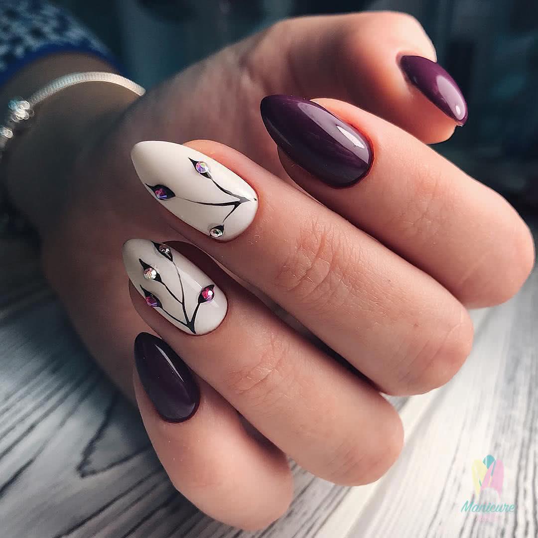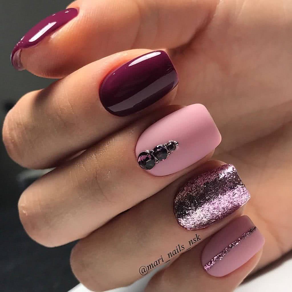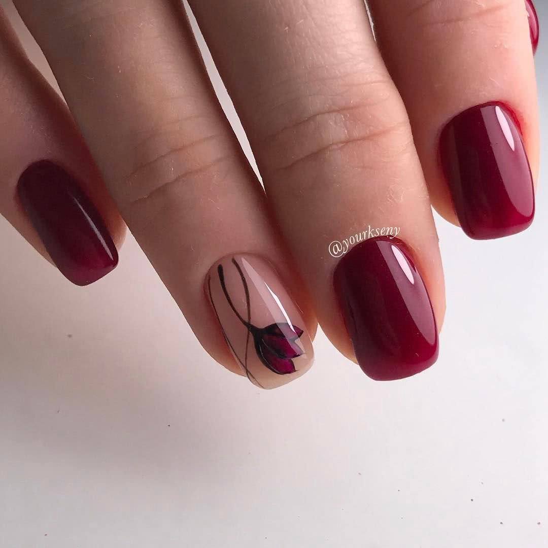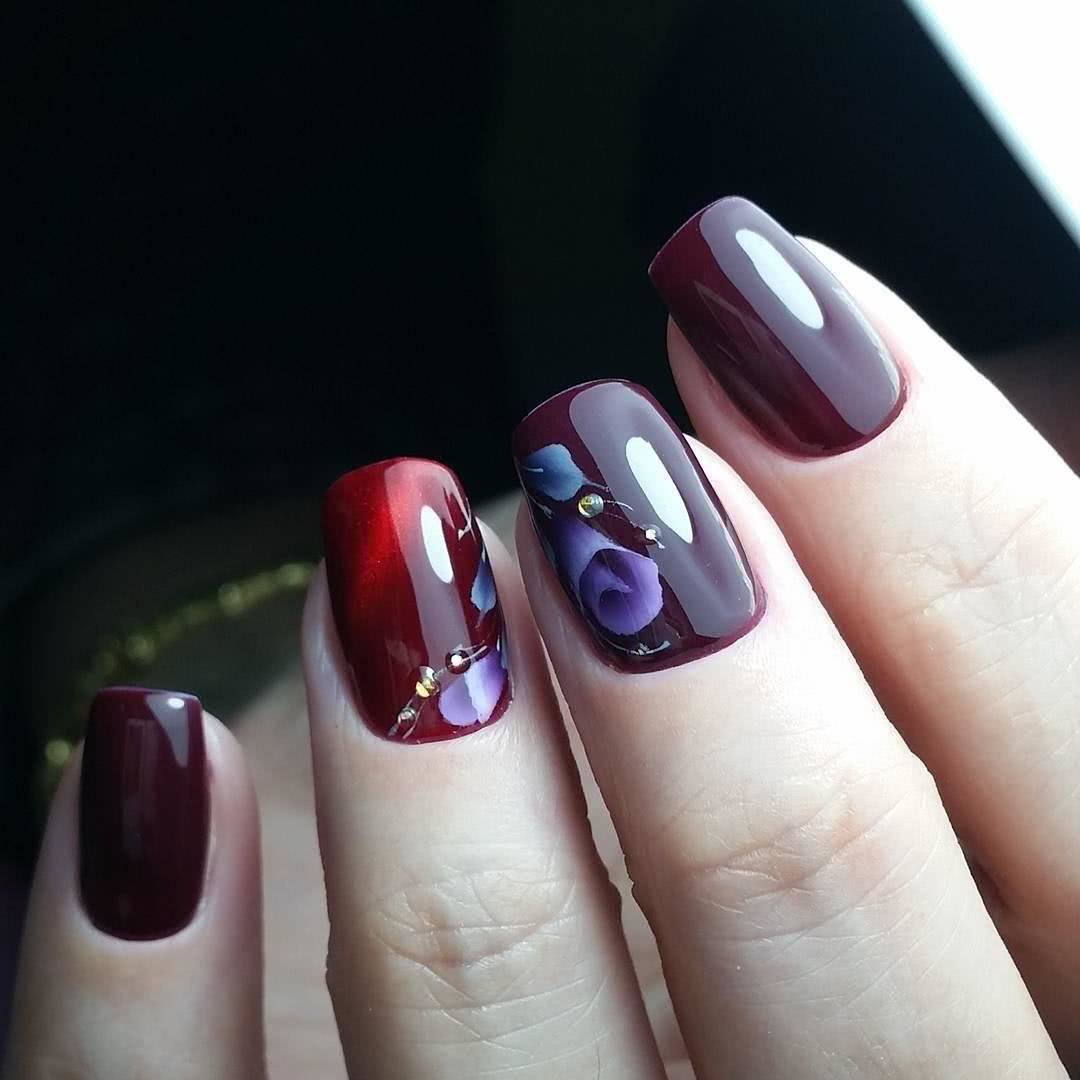Рассматривая более детально различные примеры стильного маникюра 2018 года, выделяют четыре вида. К первому относится использование бордово-коричневого цвета – самый популярный цвет 2018 года. Однако покрытие ногтей одним цветом смотрится не столь эффектно. Для того, чтобы сделать маникюр привлекательнее, необходимо разбавить цвета оттенком бордо, багрянца, а также винного и сливового цвета.