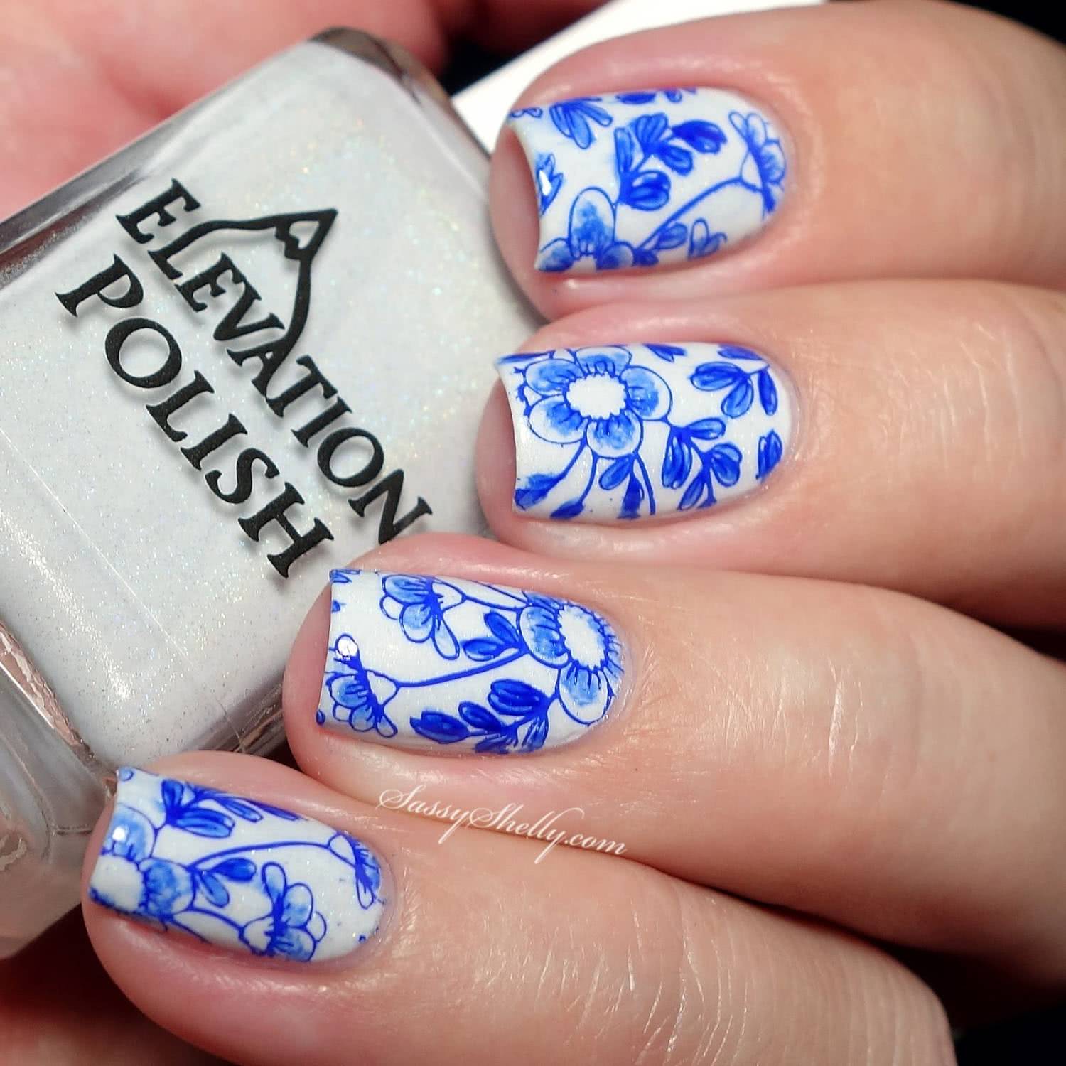 Так как сама по себе данная цветовая гамма очень нежная, то в сочетании с ней отлично будет смотреться цветочный рисунок. Он добавит в образ нотку романтичности и подчеркнет женственность. Что касается самого принта, то не обязательно делать его в том же оттенке. Контрастные варианты смотрятся не менее стильно. К тому же, за счет этого можно сделать акцент в маникюре.