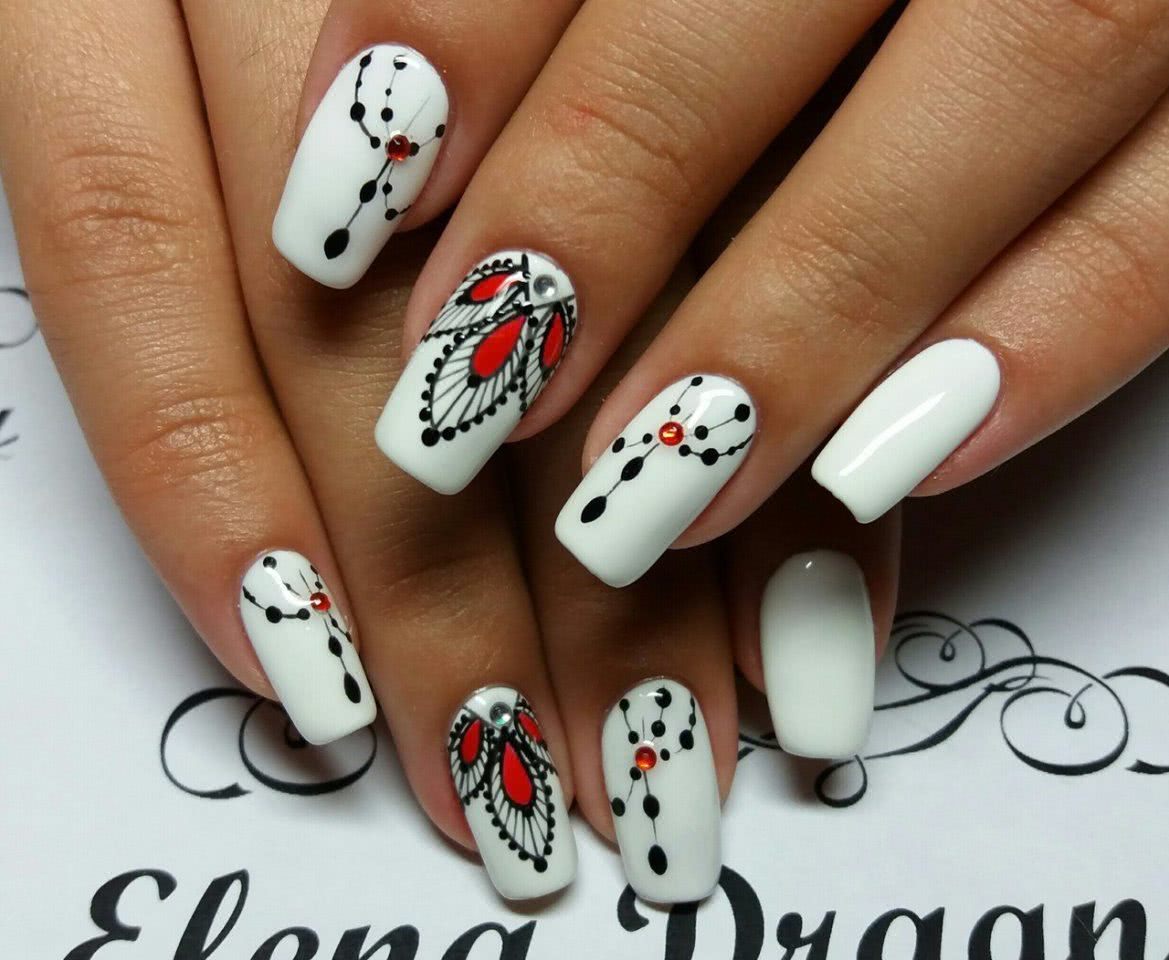 Что касается принта, совершенно необязательно выполнять его в одной цветовой гамме с фоном. Контрастные варианты также выглядят стильно. При этом удастся сделать акцент на ногтях, и поработать над созданием идеального образа.