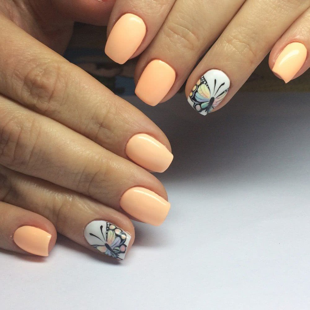 Третий вид – коралловый цвет и оттенки оранжевого. Однако не советуется использовать яркий оранжевый цвет. Лучше всего только нежные тона, чтобы маникюр не казался вульгарным.