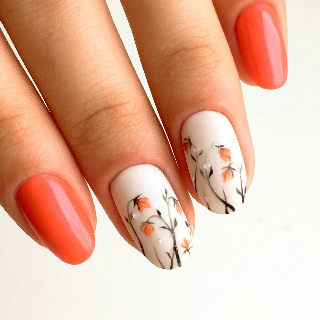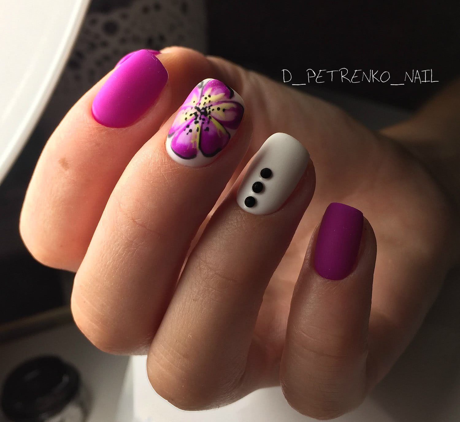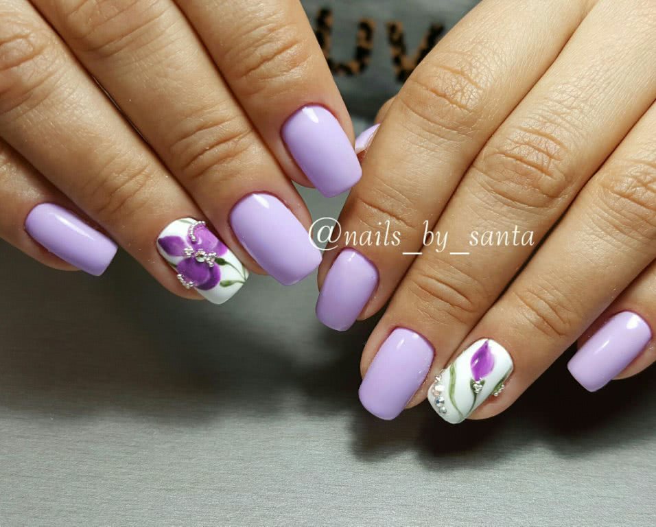Такой рисунок считается наиболее распространенным. Рисунки особенно популярны для весенне-летнего образа. Девушки выбирают цвет и оттенок для нанесения рисунков на ногтевые пластины.