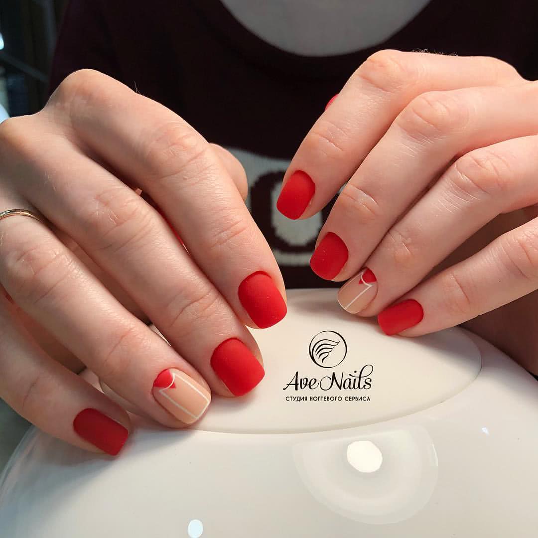 Идеальным вариантом для коротких ногтей станет однотонное покрытие. Но в таком случае не забывайте о том, что форма и состояние ногтевой пластины должно быть идеальным, иначе матовое покрытие выдаст все его недостатки.