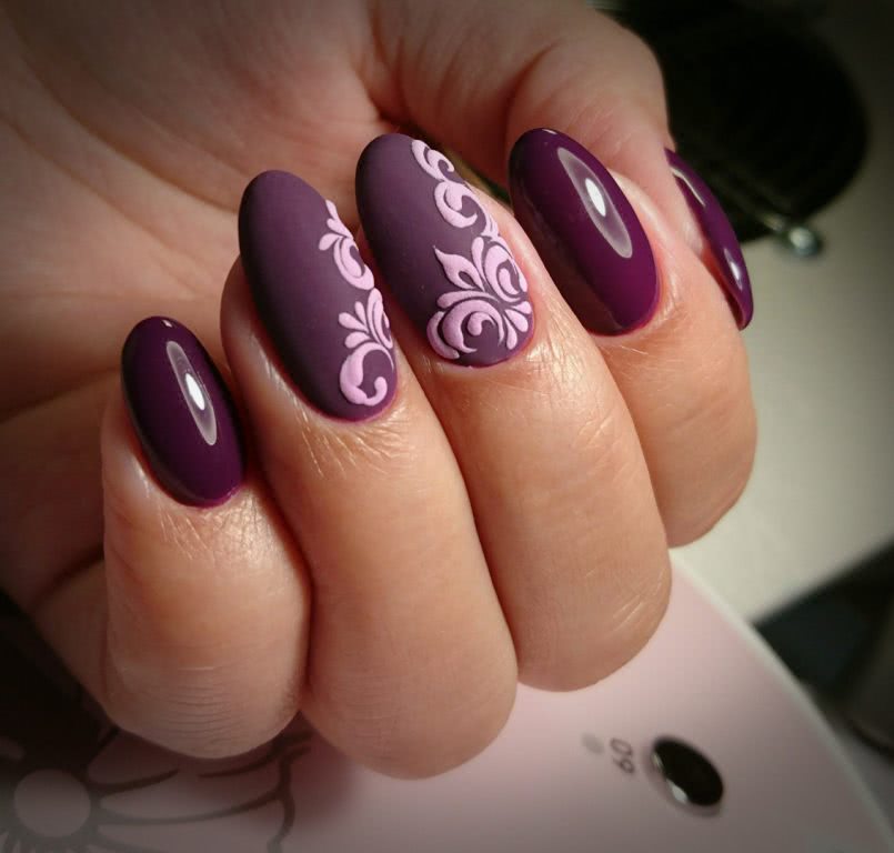 Для дневного маникюра это, может быть, однотонный дизайн, для вечернего — с росписью на тон светлее основного оттенка