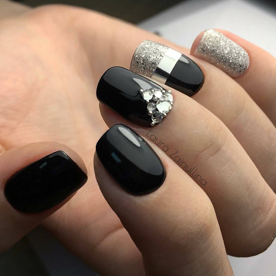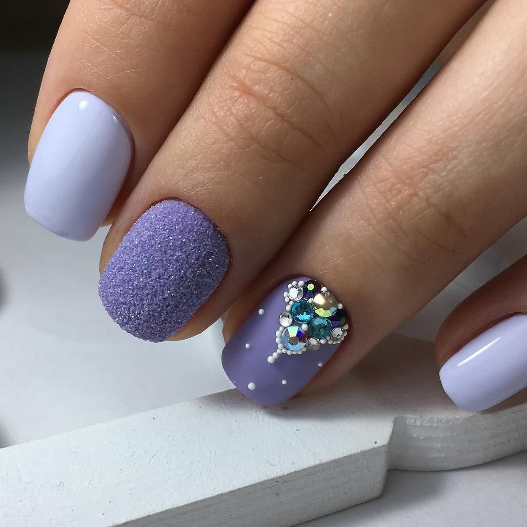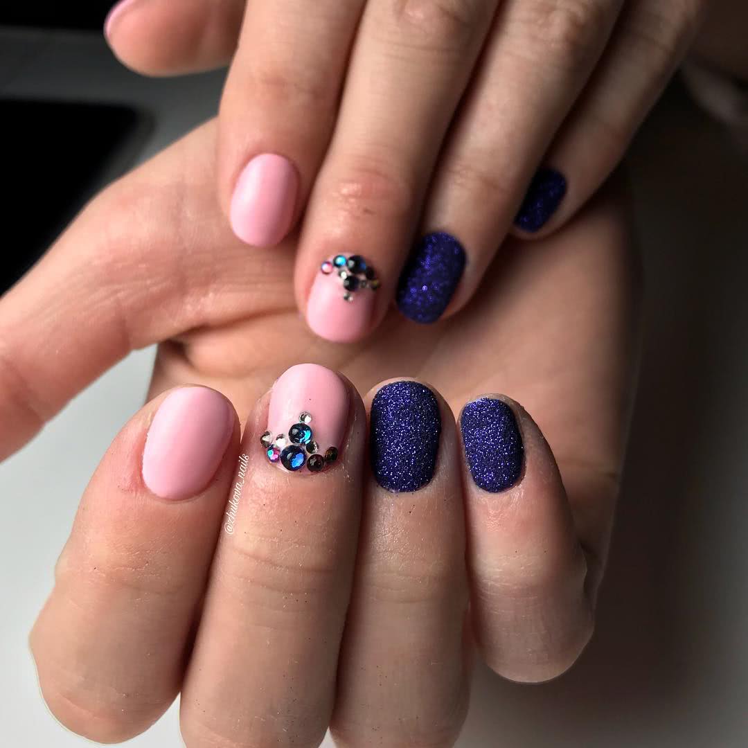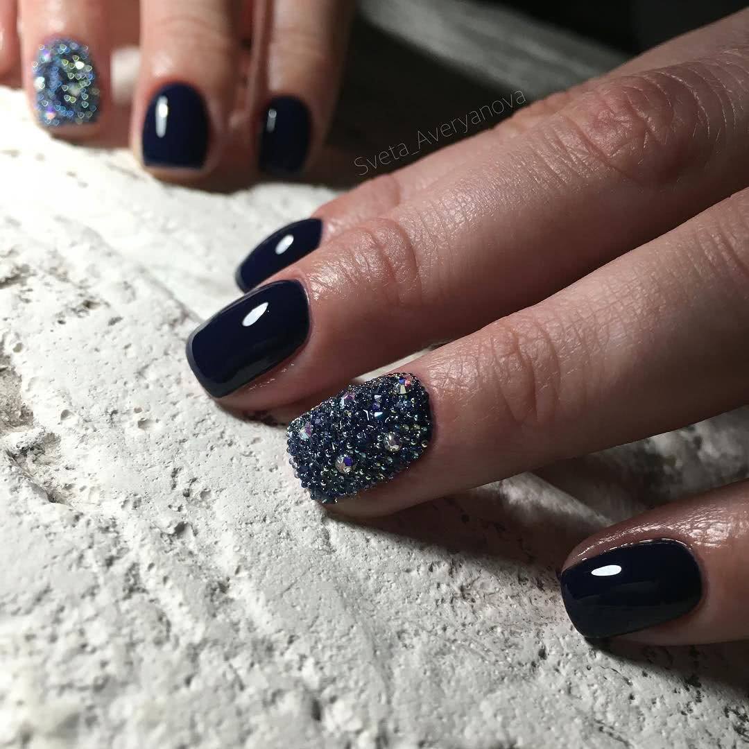 Камни могут быть разных размеров и цветов, дизайн выбирайте исходя из длины ногтей и задумки дизайна. Например, на коротких ногтях красиво смотрятся маленькие камушки, которые могут быть выложены в виде узора или стразами может быть покрыт весь ноготок, но только один, чтобы не перегружать маникюр. На длинных ногтях можно добавить уже больше страз, но все равно, нужно делать акцент на одном-двух ноготках, а не наносить на все ногти. Камни и стразы шикарно смотрятся и на глянцевом покрытии и на матовом.