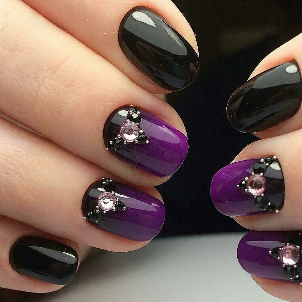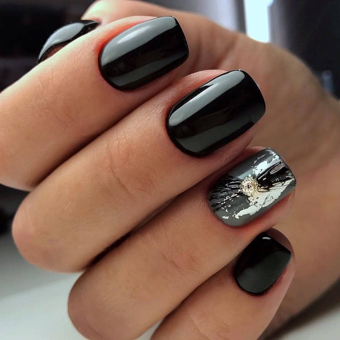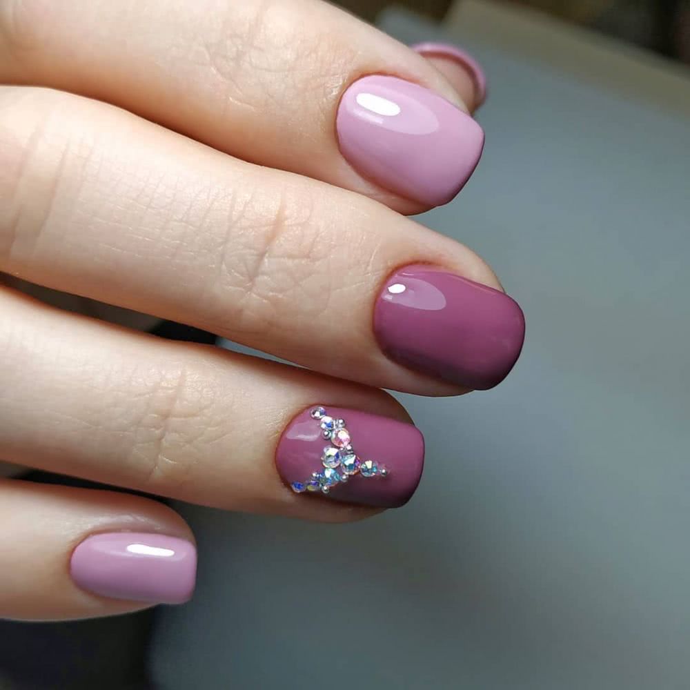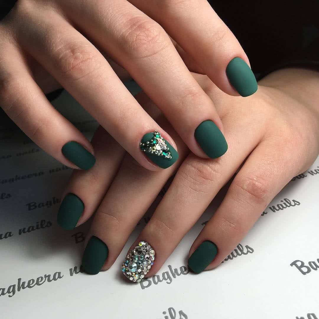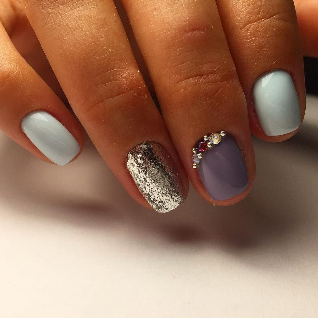 Камни могут быть разных размеров и цветов, дизайн выбирайте исходя из длины ногтей и задумки дизайна. Например, на коротких ногтях красиво смотрятся маленькие камушки, которые могут быть выложены в виде узора или стразами может быть покрыт весь ноготок, но только один, чтобы не перегружать маникюр. На длинных ногтях можно добавить уже больше страз, но все равно, нужно делать акцент на одном-двух ноготках, а не наносить на все ногти. Камни и стразы шикарно смотрятся и на глянцевом покрытии и на матовом.