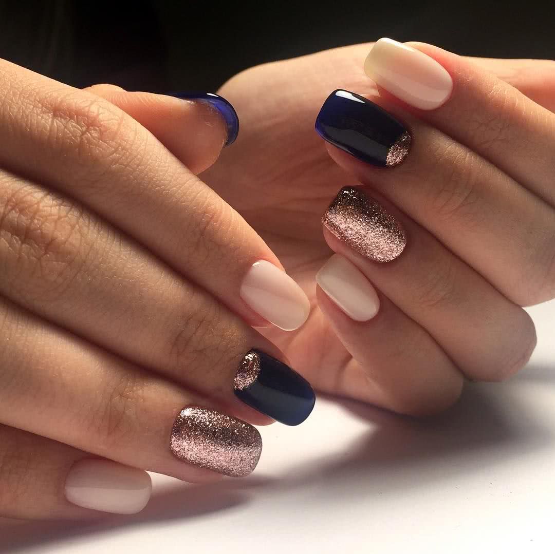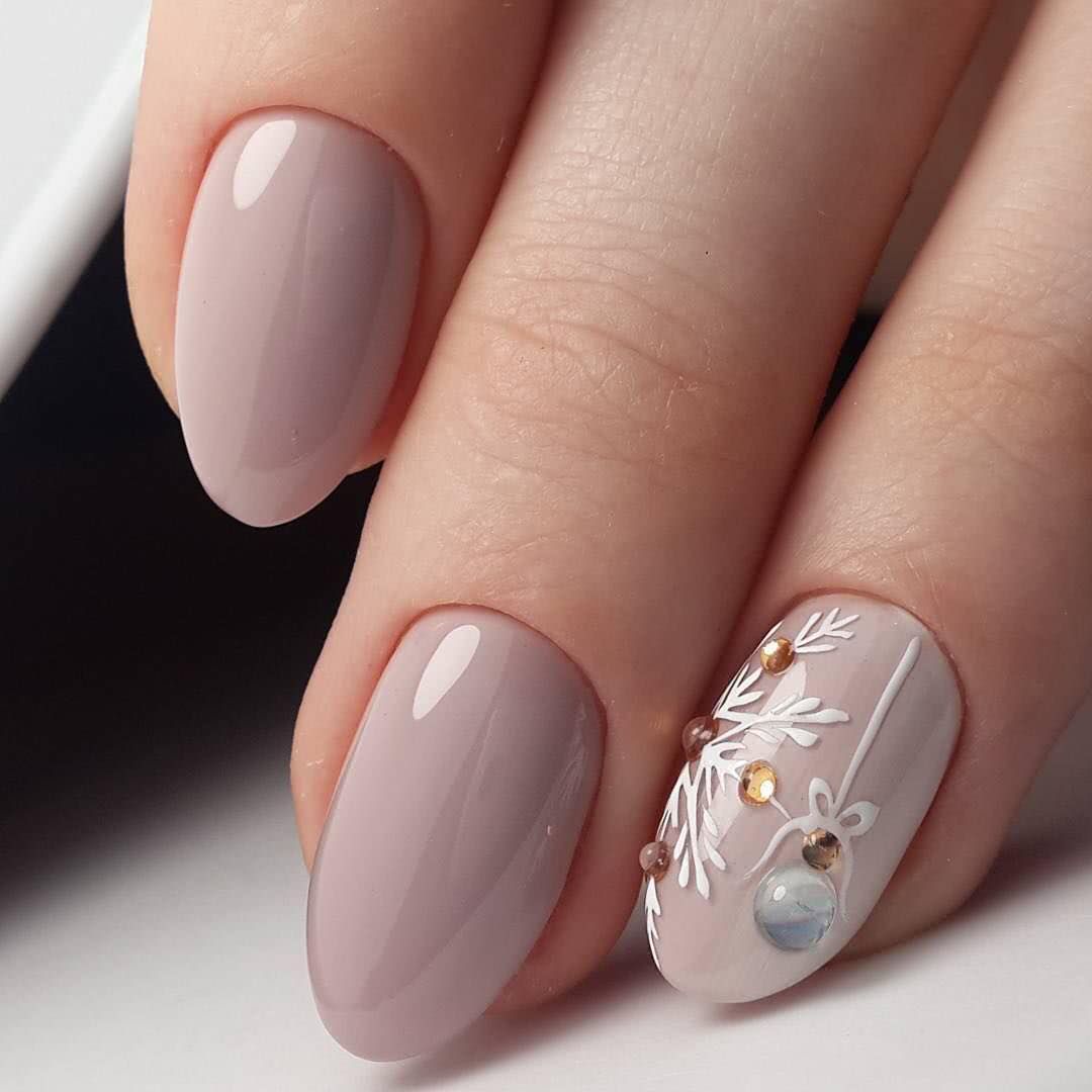Зимние nail-идеи лаконичные, строгие, с умеренным декором, в бежевых и темных оттенках. Но, как правило, сопровождаются блестящим декором. Что максимально перекликается с понятием зимних праздников, уюта и часто тесно связано с «хюгге». Этот стиль характерен для Норвегии, Дании и Швеции, а его элементы используют не только в интерьере, моде, но и маникюре.