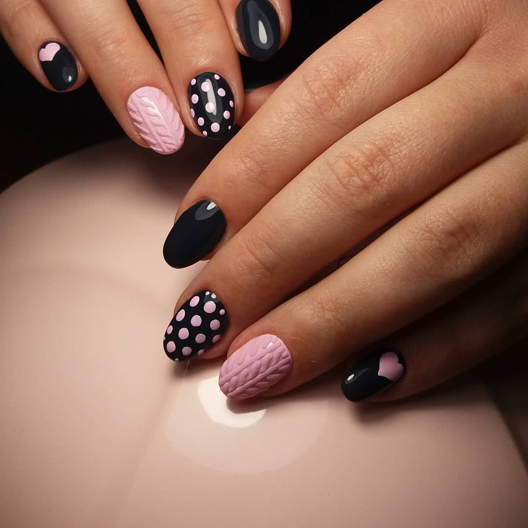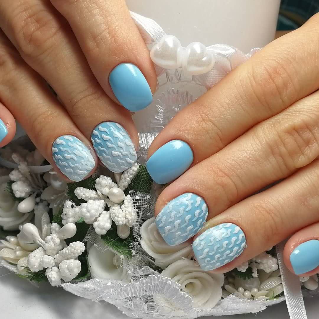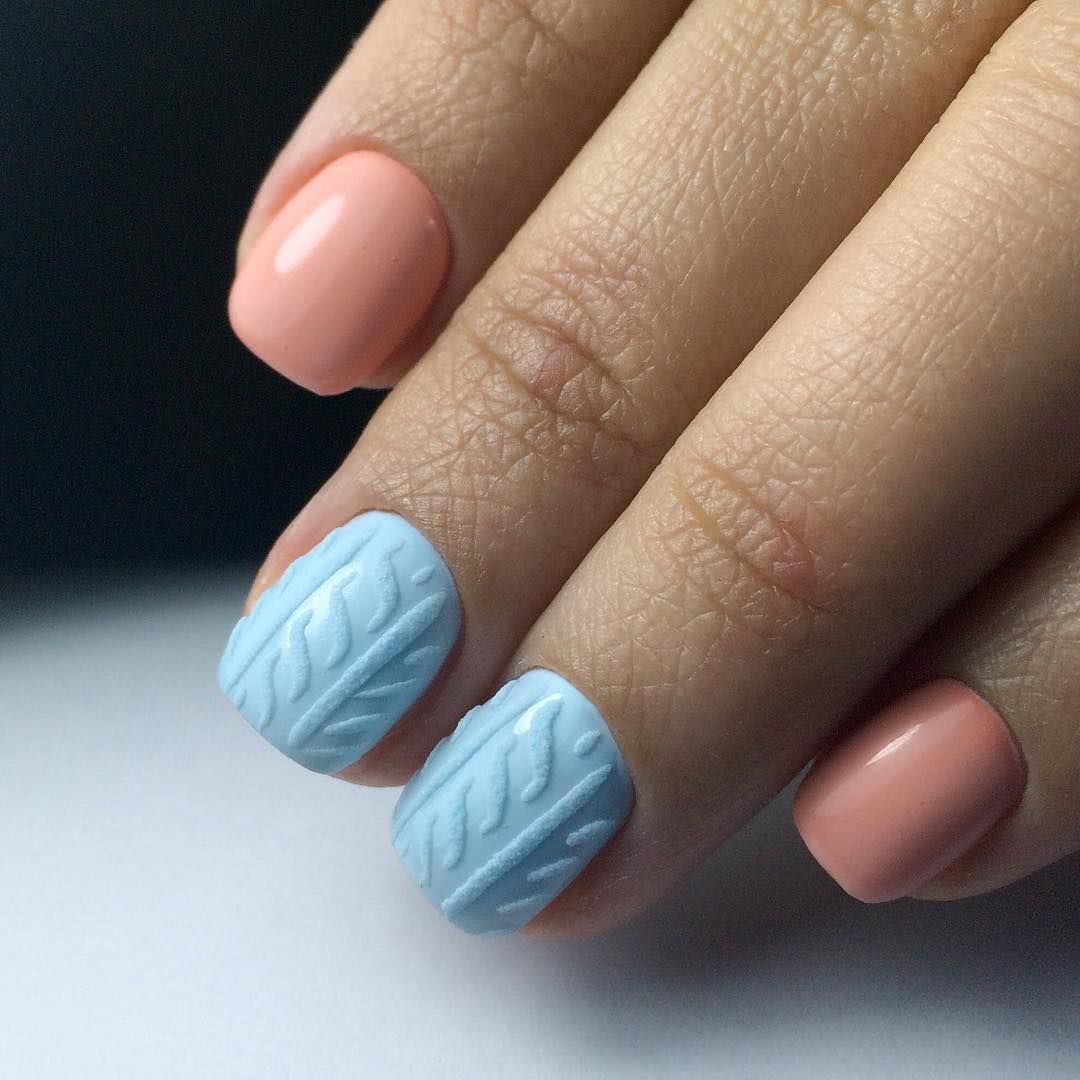 Эффект объемной вязки свитера очень красиво и изысканно смотрится на ногтевых пластинах любой формы и длины. Первые ощущения, с которыми ассоциируются такие узоры, — это тепло и уют, мягкий шарф, плед и кружка ароматного какао или кофе. Для создания вязаного дизайна используются в основном нежные или пастельные оттенки, хотя не менее интересно смотрятся темные и глубокие цвета. Основа под рисунок может быть матовой или глянцевой, все зависит от ваших предпочтений.