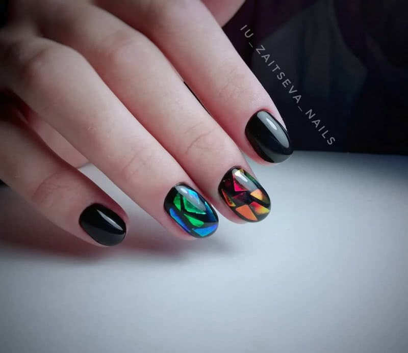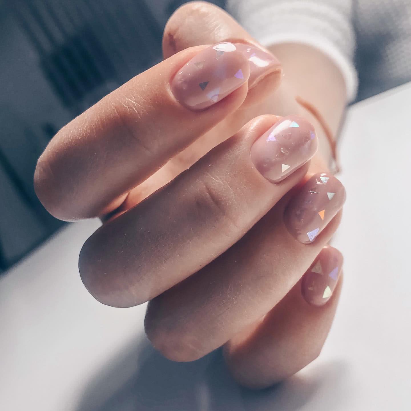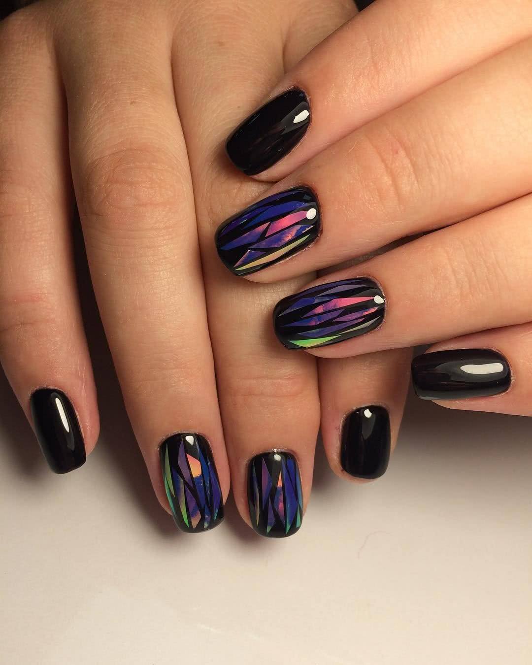 Отлично выглядит маникюр с дизайном «битое стекло». Данная идея ежедневно набирает всё большую популярность.