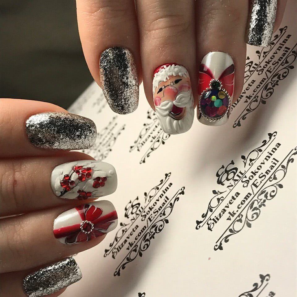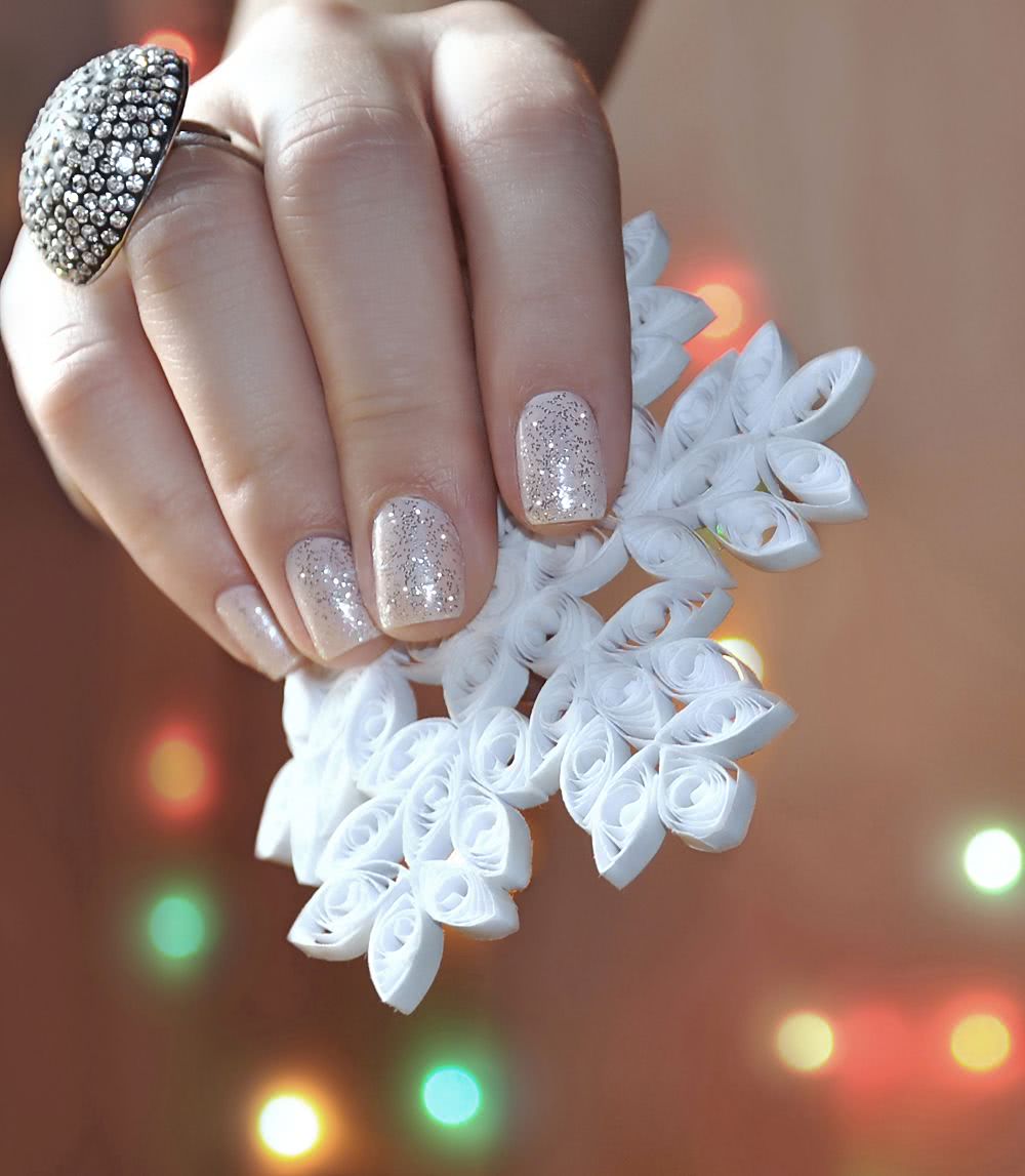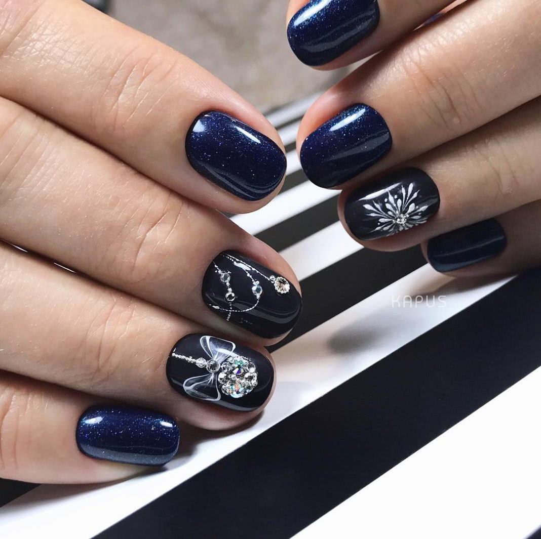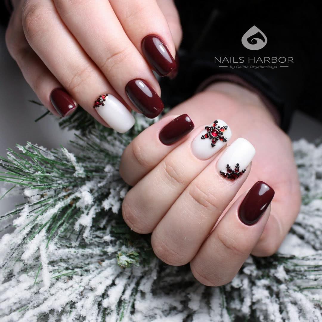 Когда, как не зимой сверкать красивым и шикарным маникюром с камушками и стразами, особенно в новогодние праздники.