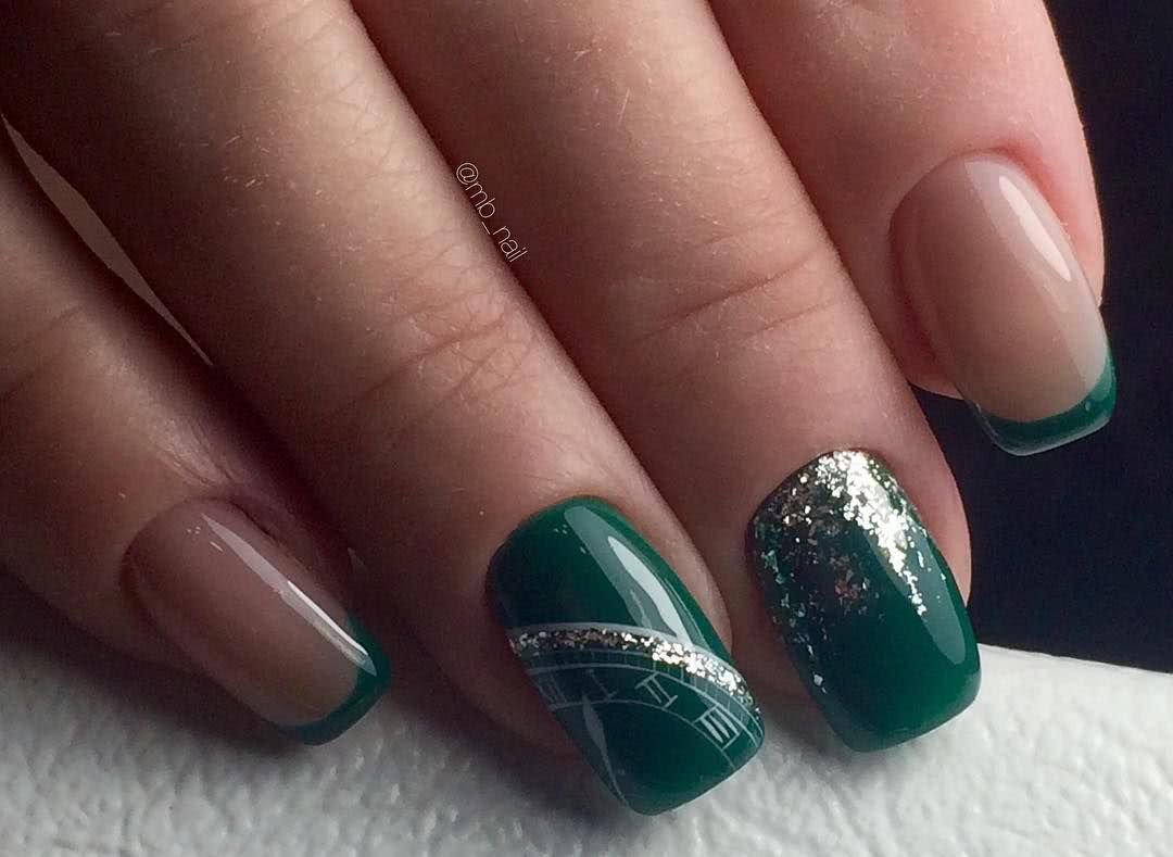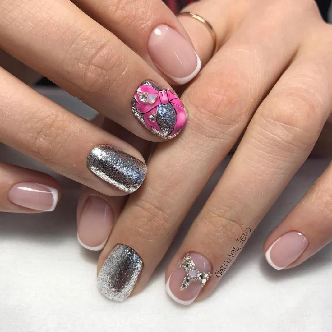 - френч с глиттером – простое и популярное решение для стильного декора ногтей. Гель-лаки с глиттером используются для выделения края ногтя и прикорневой зоны. В повседневных нейл-артах используйте серебряный глиттер, в торжественных – золотой, красный, синий и другие.
