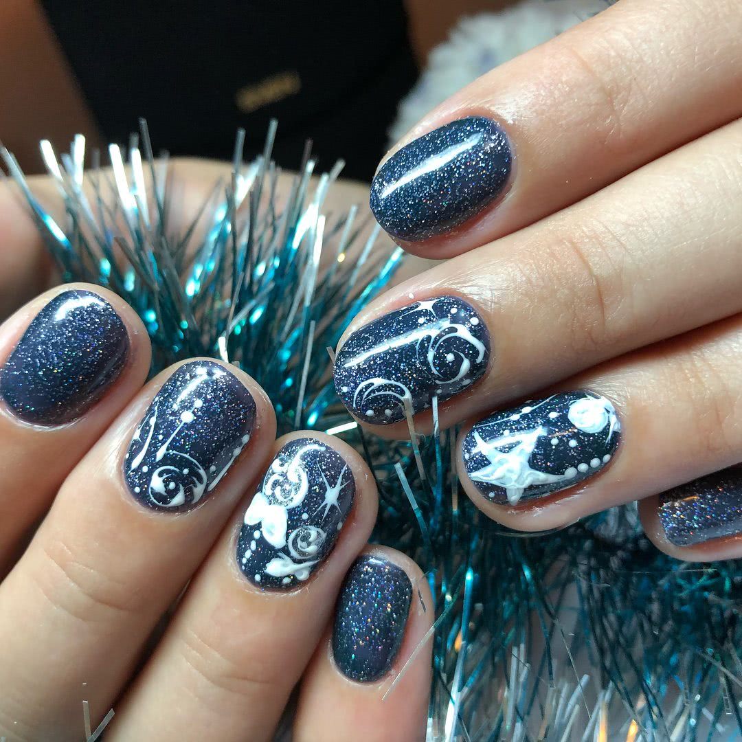 Красивый зимний маникюр 2020-2021 можно украсить разными рисунками: узорами, веточками, абстракцией, геометрией, морозной паутиной, новогодней тематикой. Каждый рисунок на ногтях — это произведение искусства, самые интересные идеи смотрите в нашей фотоподборке: