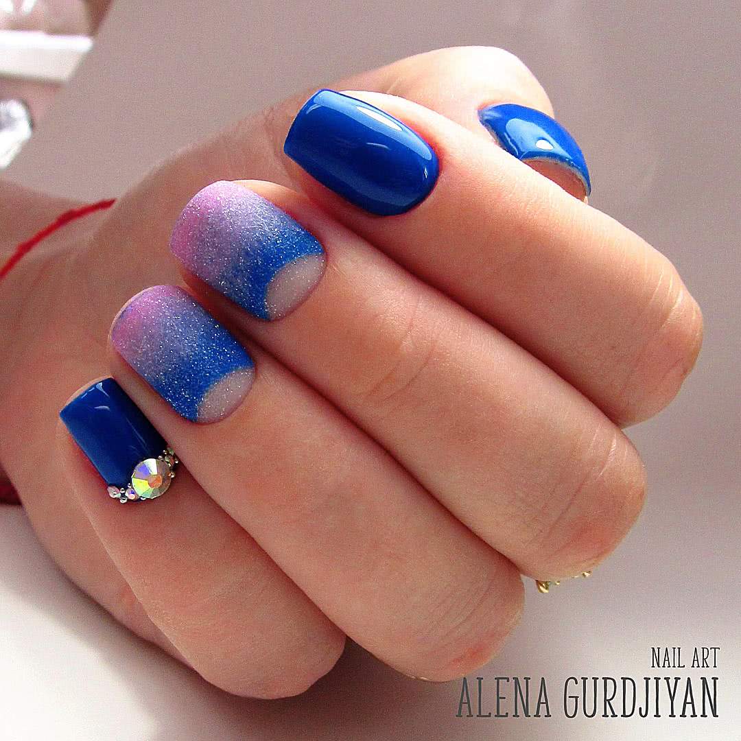 Модным зимним дизайном будет и градиент. При этом он может быть не только вертикальным либо горизонтальным. Сегодня можно создавать эффект омбре на ногтях разных пальцев. Каждый из них красят лаком, отличающимся от другого пигмента на полтона. Плавная растяжка такого типа смотрится очень красиво, но лучше использовать для дизайна родственные оттенки одного цвета.