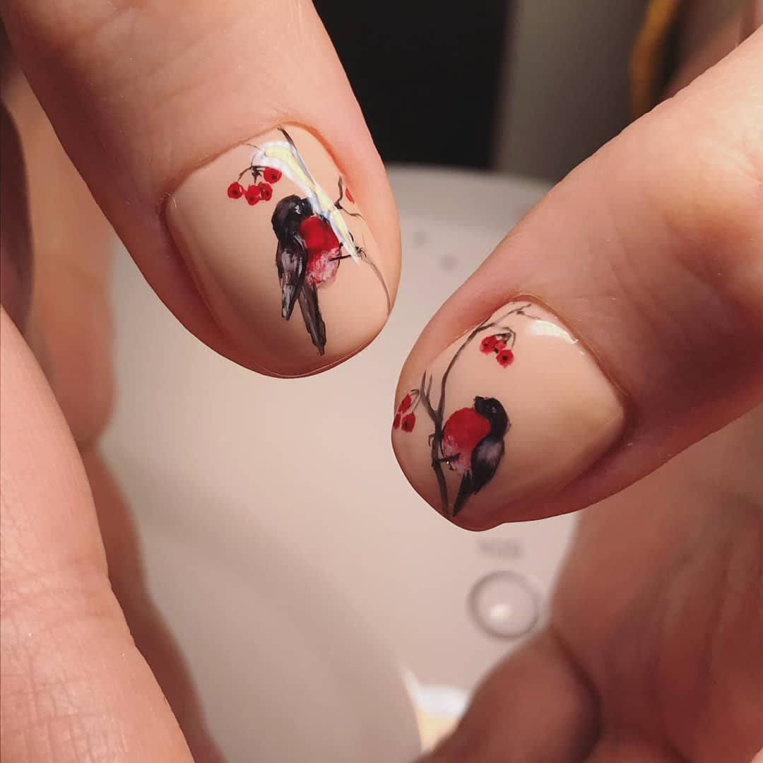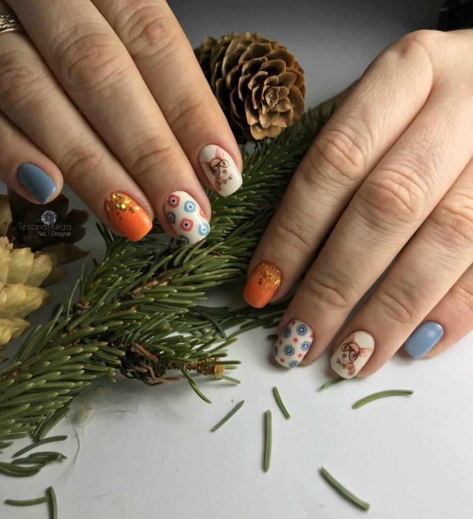 В зимнем сезоне особенно актуальными становятся разнообразные скандинавские рисунки: медведи, снежинки, птички, снеговики, олени и т.д. Они используются в оформлении одежды, обуви, аксессуаров. Кроме того, их нередко выбирают для дизайна ногтей. Смотрится это всегда очень красиво и добавляет образу нотку уюта. Чтобы сделать маникюр чуть более праздничным, стоит дополнить его блестками или фольгированными деталями. Но учитывайте, что в качестве основного покрытия лучше всего смотрятся светлые, нейтральные оттенки. Благодаря этому весь фокус смещается именно на рисунок.