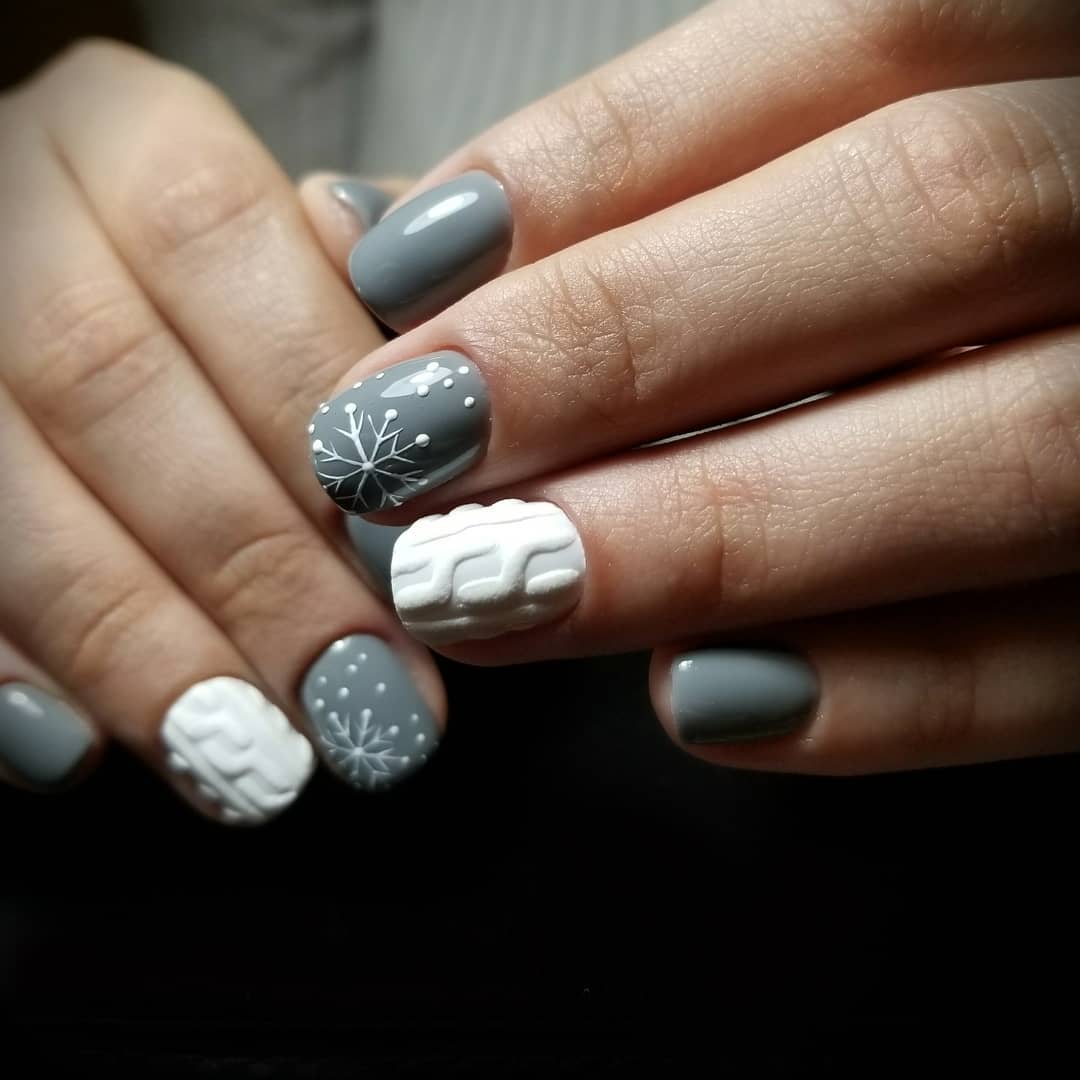 Вязаный маникюр идеально подойдет для зимних образов, он выглядит очень красиво и стильно, как в матовом топе, так и глянцевом. Для вязаного маникюра подойдут пастельные цвета лаков: розовый, голубой, серый, белый, сиреневый, молочный. Зимний дизайн маникюра 2020-2021 трудно представить без новинок вязаного маникюра: