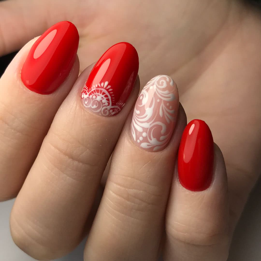 При это важно минимизировать наличие рисунков и страз, чтобы дизайн не выглядел вульгарно. Дополняйте красный маникюр простой геометрией, ажурными лунками, минималистичными линиями.