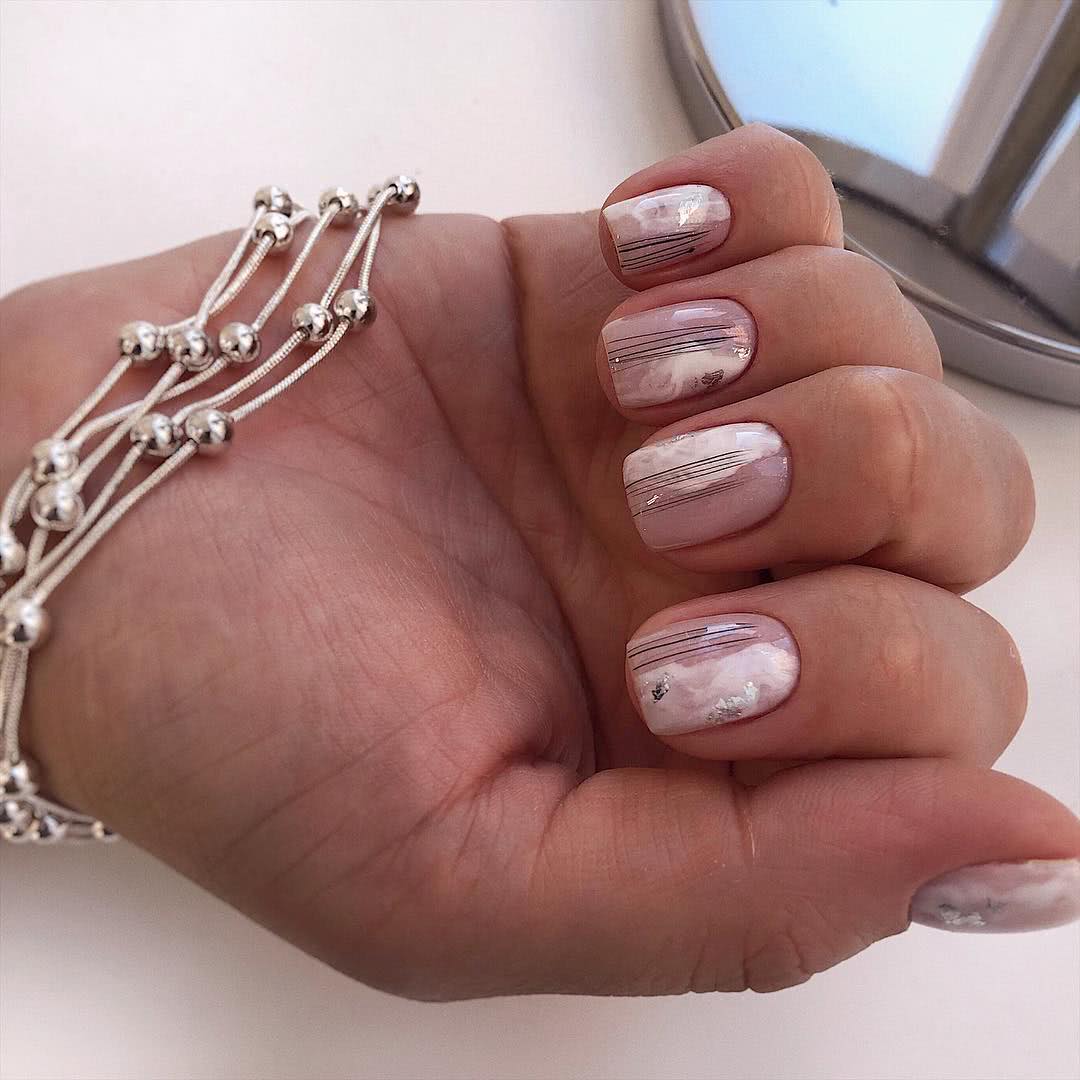 Именно поэтому настоятельно рекомендуем использовать природные оттенки. Если говорить о текстуре лака, то по-прежнему актуальны имитации мрамора и перламутра.