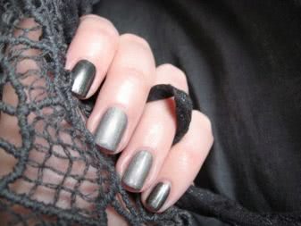 С «металлом» все просто: выбирайте лаки с эффектом металлик , с легким шиммером, который «подсвечивает» даже мрачные, на первый взгляд, оттенки.