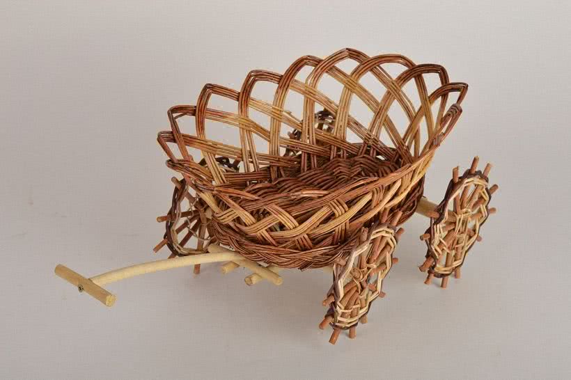 Способов плетения предостаточно, но в них во всех используются основные техники лозоплетения. Новичкам, которые ни разу не занимались подобным ремеслом, стоит посмотреть в интернете видео как плести корзины из ивы. А чтобы изделия получились ровными и красивыми, лучше потренироваться на изготовлении простых предметов – сувениров, горшочков, коробочек.