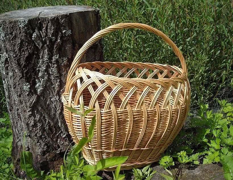 Стандартная схема плетения корзинки – кругообразная в одном направлении (слева направо). Рабочей веточкой выступает левый прут. Но перед тем как плести корзины из ивы, следует изучить методы плетения.