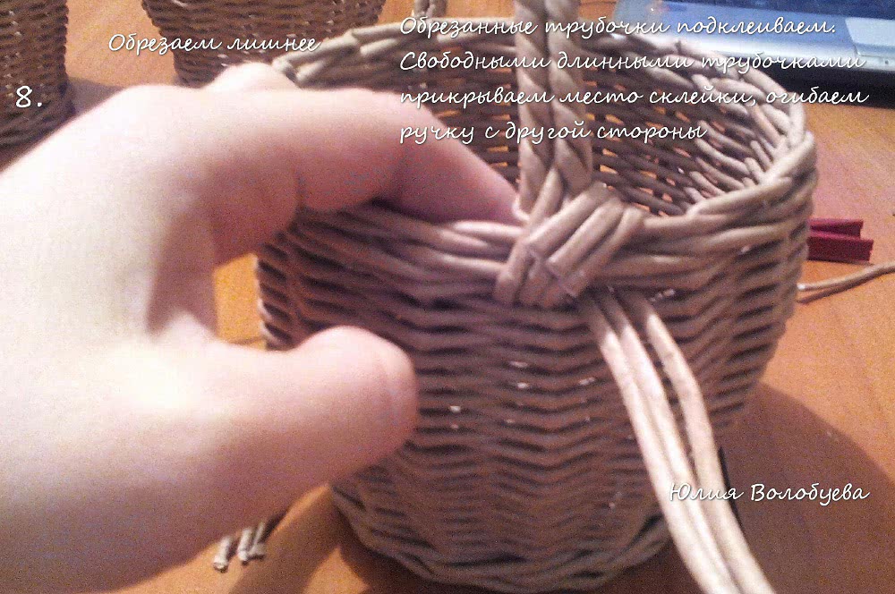 Ниже представлены поэтапные фотографии крепления ручки к корзинке и аккуратного оформления замка: