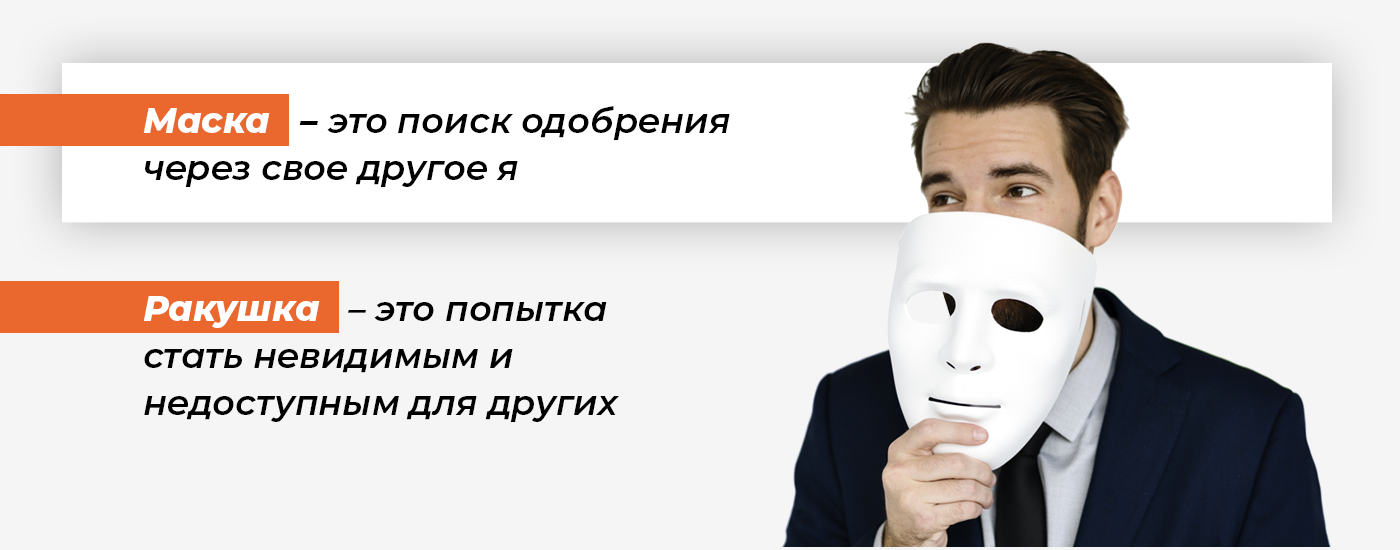 Вы тоже так делаете? Маска позволяет нам привлечь внимание и одобрение окружающих. Ракушка помогает спрятаться от осуждений и обвинений