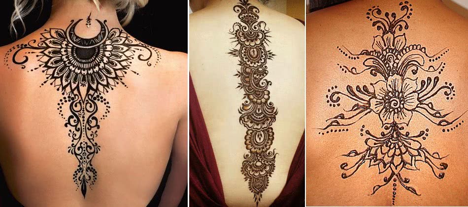 Рисунок на спине скорее будет радовать окружающих, чем вас самих, но главным преимуществом является большой простор для творчества. Мастер может нанести Шри Ганеша, дракона или слона. Обычно рисунок наносят в верхней части спины (ближе к шее), на пояснице или лопатке.