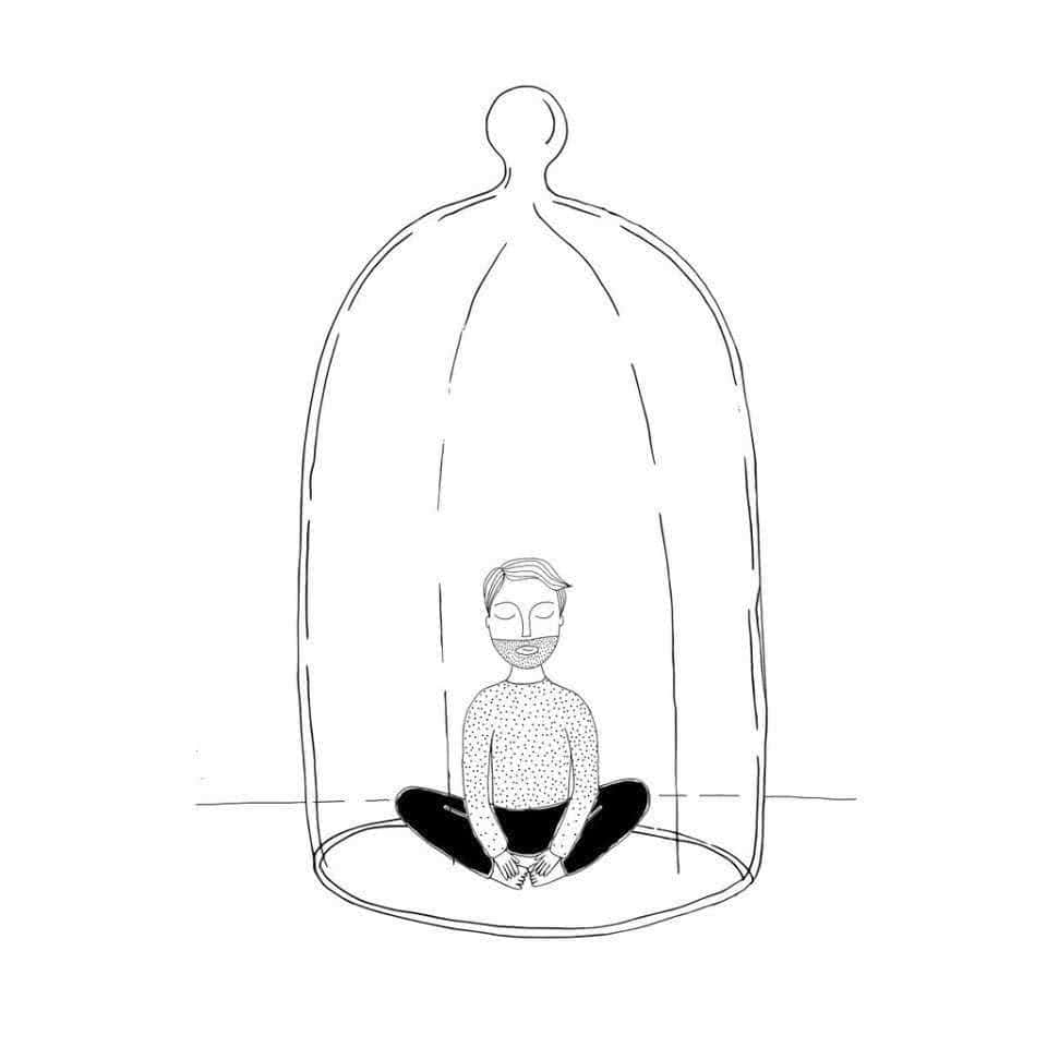 Чудной человек с тату на лбу и рожками — вариант срисовки для мальчиков