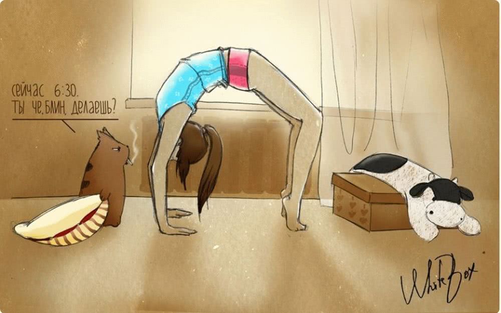 Прикольная спортивная картинка. С утра пораньше упражнения на гибкость.