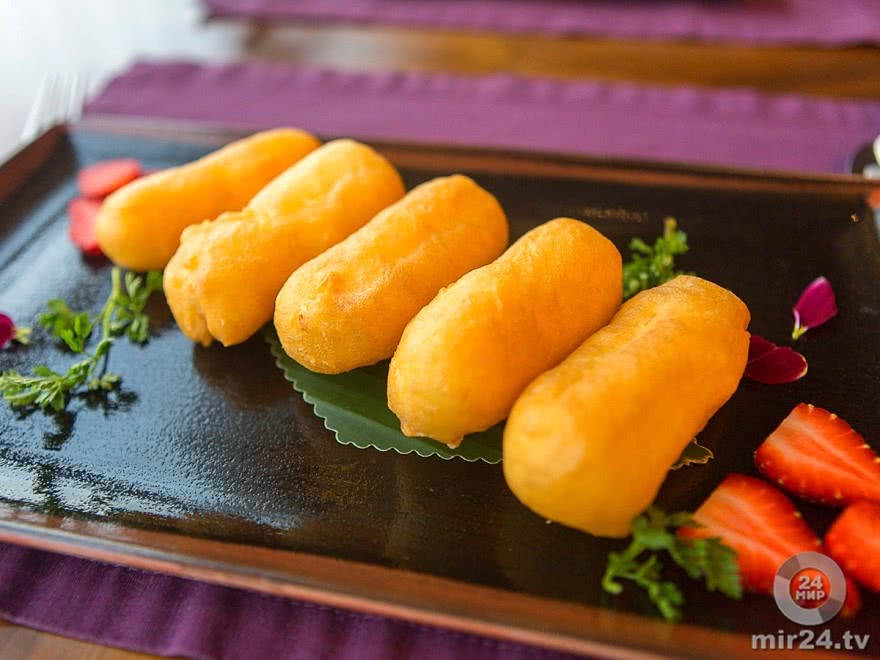 Кляр быстро превращается в хрустящую пышную корочку, а мороженое внутри него тает, но не течет. Начинка представляет собой что-то вроде нежнейшего сладковатого суфле. Вообще эта особенность – сочетание хрусткой или просто твердой корочки и мягкой, суфлеобразной или даже полужидкой начинки – характерна для китайской кухни. Баланс между твердым и мягким, горячим и холодным, очень важен в кулинарных традициях Поднебесной.