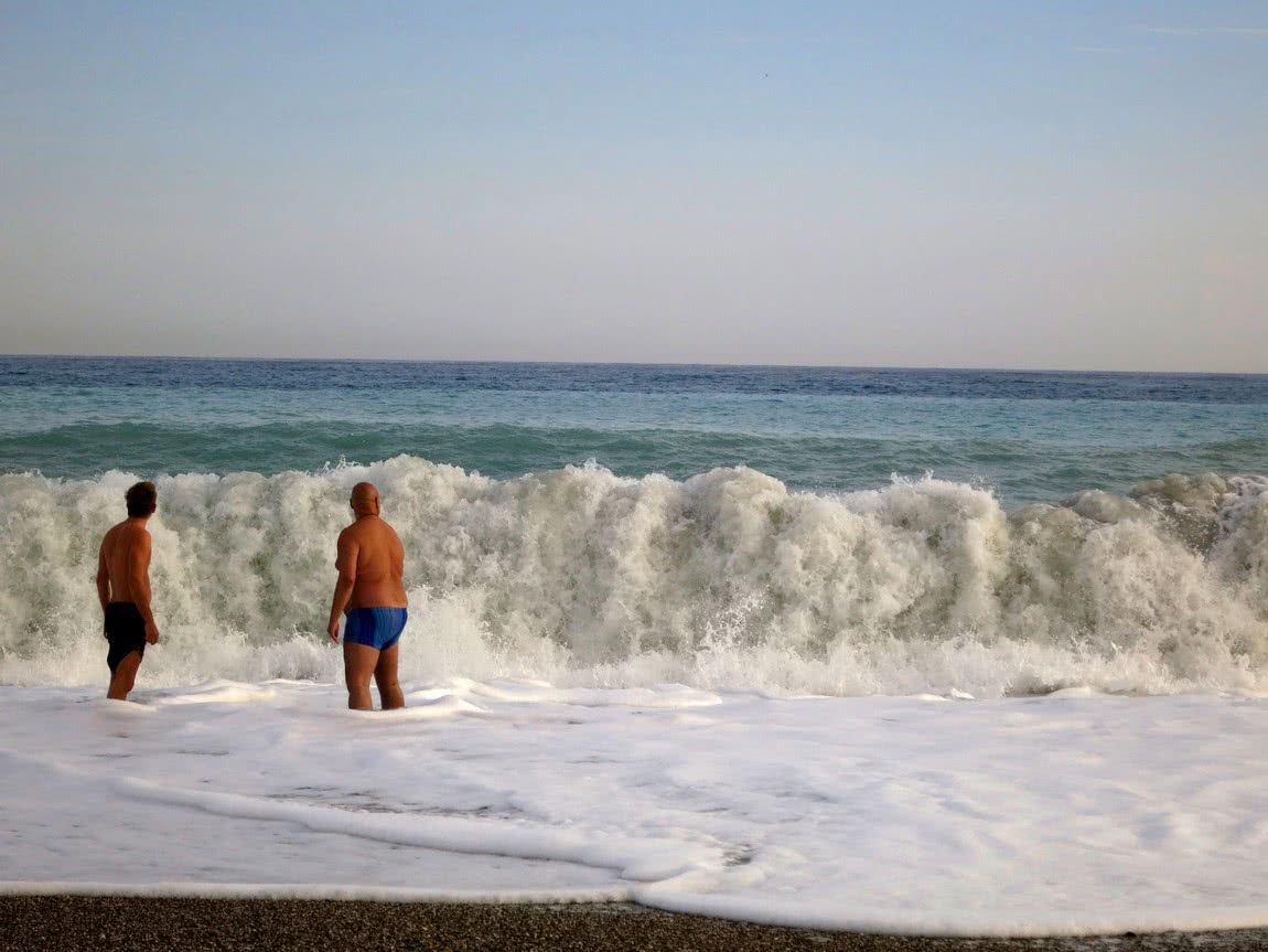 Средиземное море у берегов Турции. Оно неспокойное. Сильные волны набегают на берег. Никто не купается. Море великолепно. Морские волны усилились, и стали сильнее заливать пляж. Кто не успевает, у того заливается обувь, или одежда. На пляж пришёл пловец, решивший испытать судьбу – поплавать в таких волнах. Волны с грохотом набегают на берег, разбиваясь мелкой водяной пылью. Белая пена разливается ещё дальше. Самые огромные волны с лёгкостью прокатываются через береговую пристань для катеров, накрывая их целиком. Пловец заплыл до буйков, и поплыл вдоль них. Его наблюдают все отдыхающие, ожидая, чем это закончится.