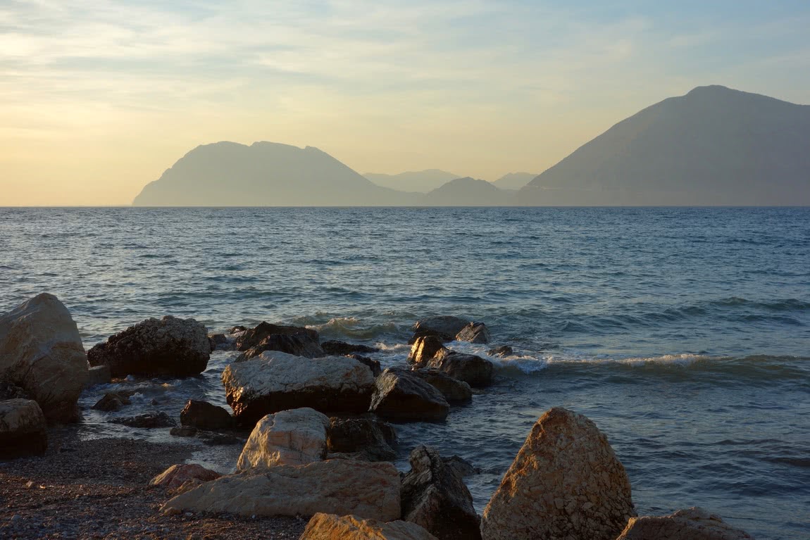 Адриатическое море (Черногория). Остров вдали называется Св. Неделя или Святое воскресение. Оттуда каждое утро доносится нежный колокольный перезвон.